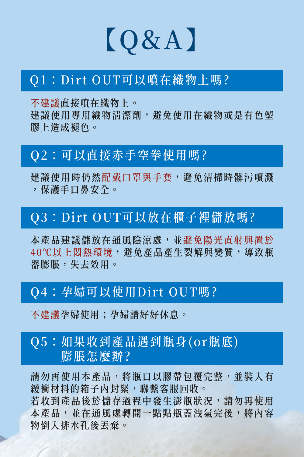 1️⃣Q:Dirt OUT可以噴在織物上嗎?