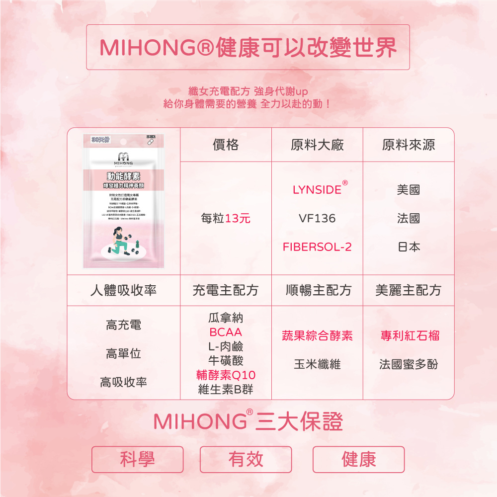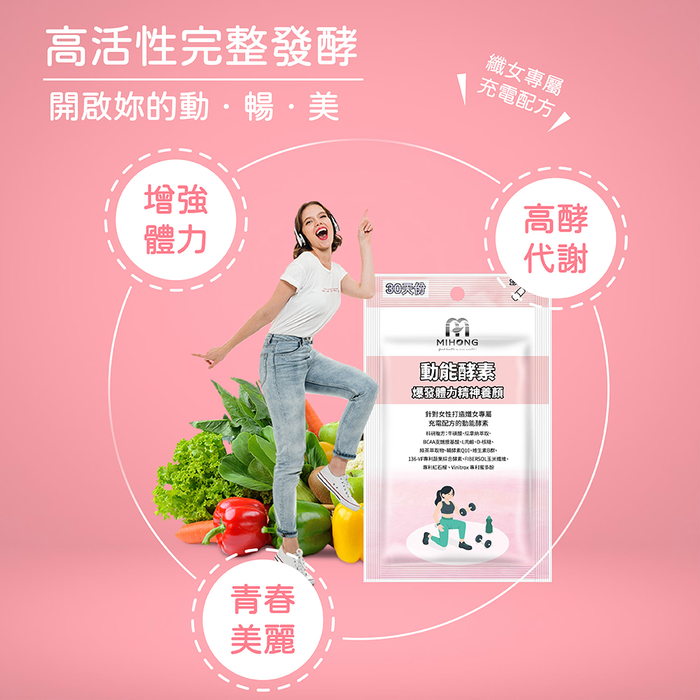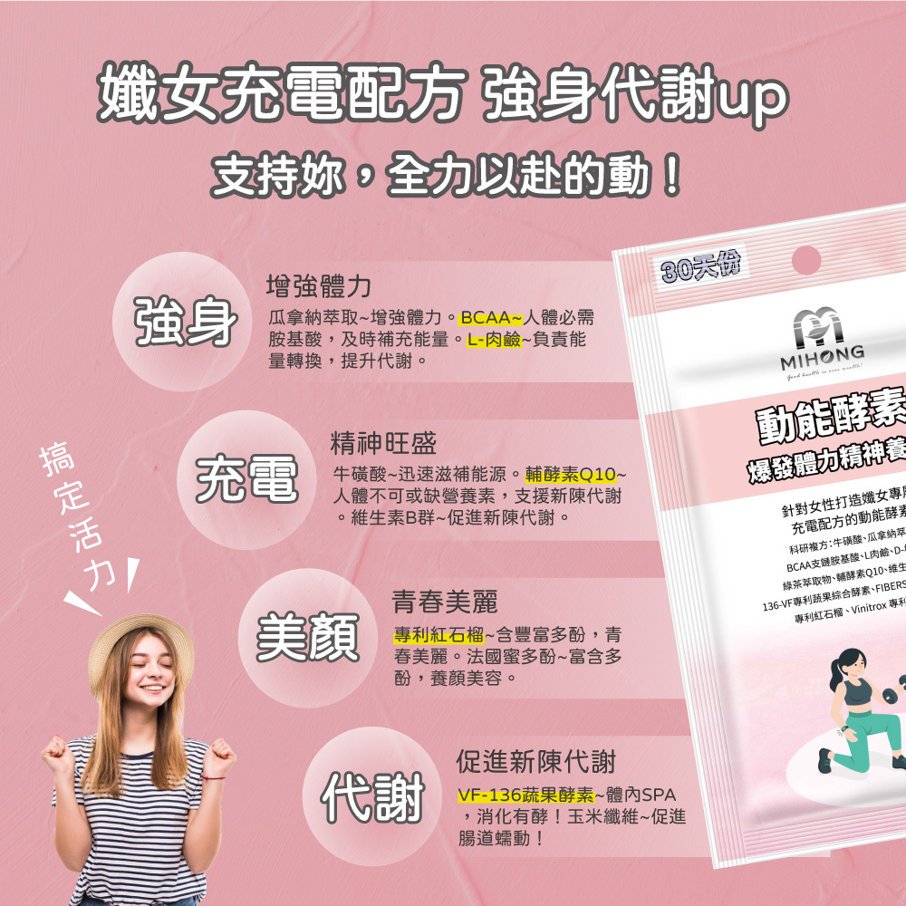 👧MIHONG®針對女性打造孅女專屬充電配方的動能酵素,讓妳體力up代謝up,支持妳,全力以赴的動!