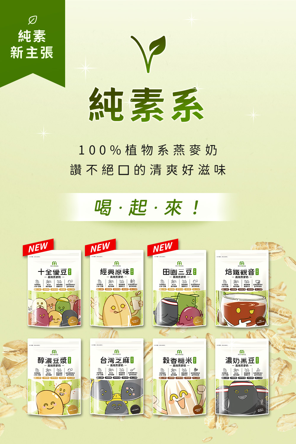 🌿高效燕麥奶-十全優豆: 十種豆類與高級燕麥奶融合,香氣層次豐富,口感細膩濃郁,純素健康飲品,帶來滿滿的滋養與愉悅!