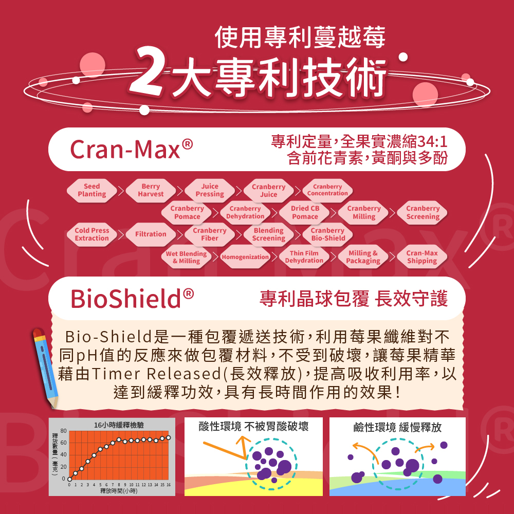 MIHONG專利蔓越莓複方益菌採用兩大技術專利-CRAN-MAX®&BIOSHIELD®