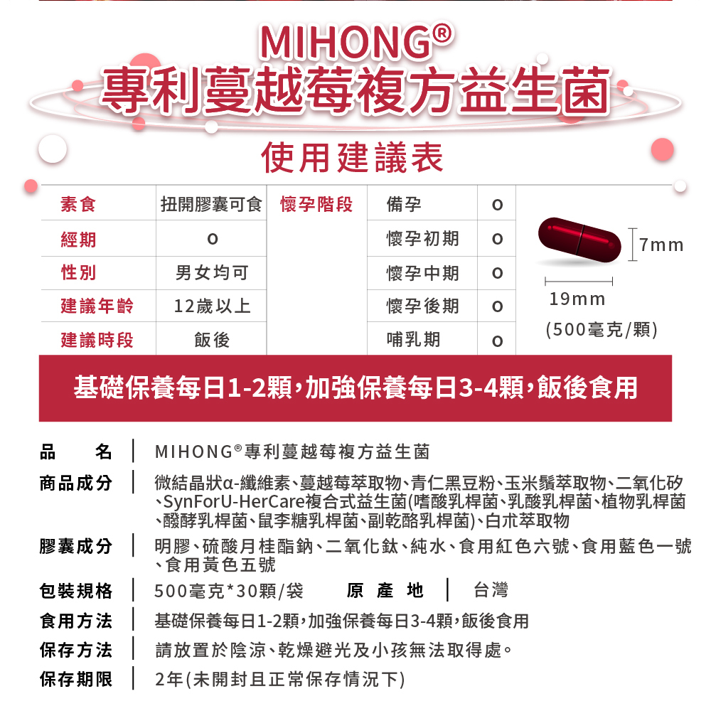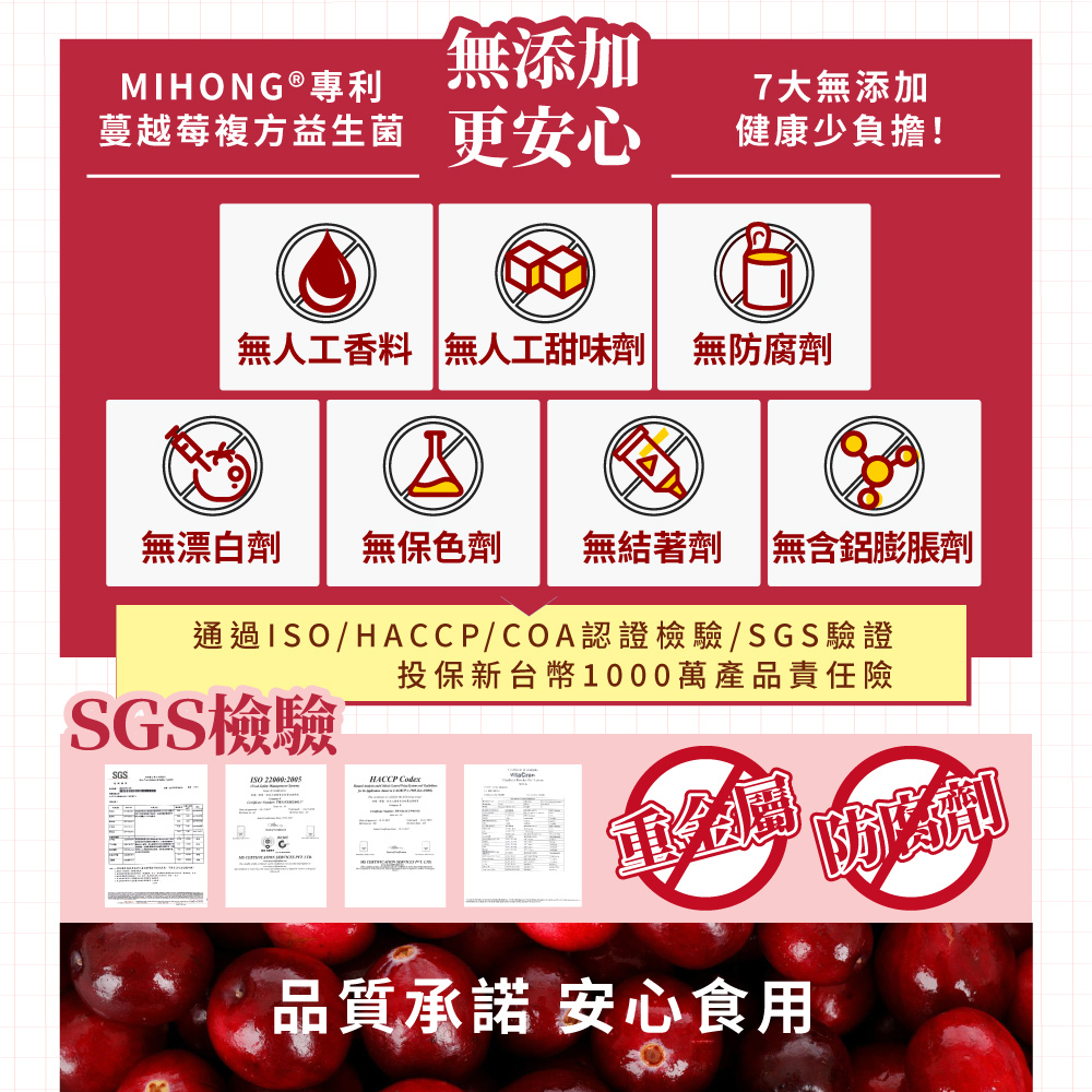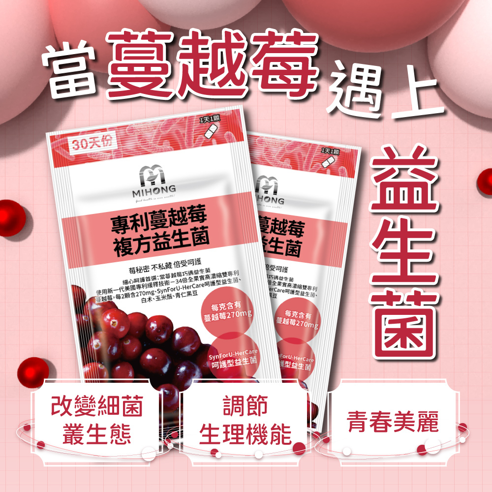 指定商品,【MIHONG® 專利蔓越莓複方益生菌】滿2件88折,滿3件84折,滿4件81折,滿6件75折,滿15件7折,滿25件68折