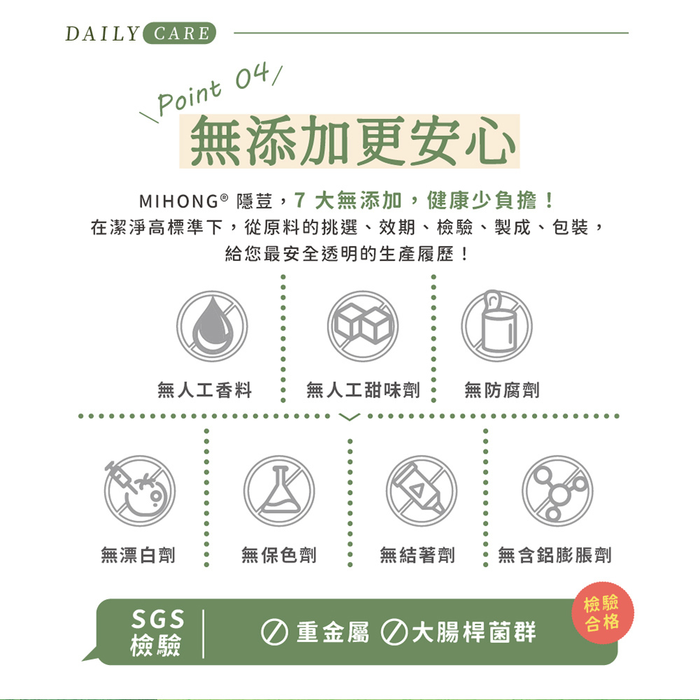 MIHONG隱荳通過多項檢驗 七大無添加 健康少負擔