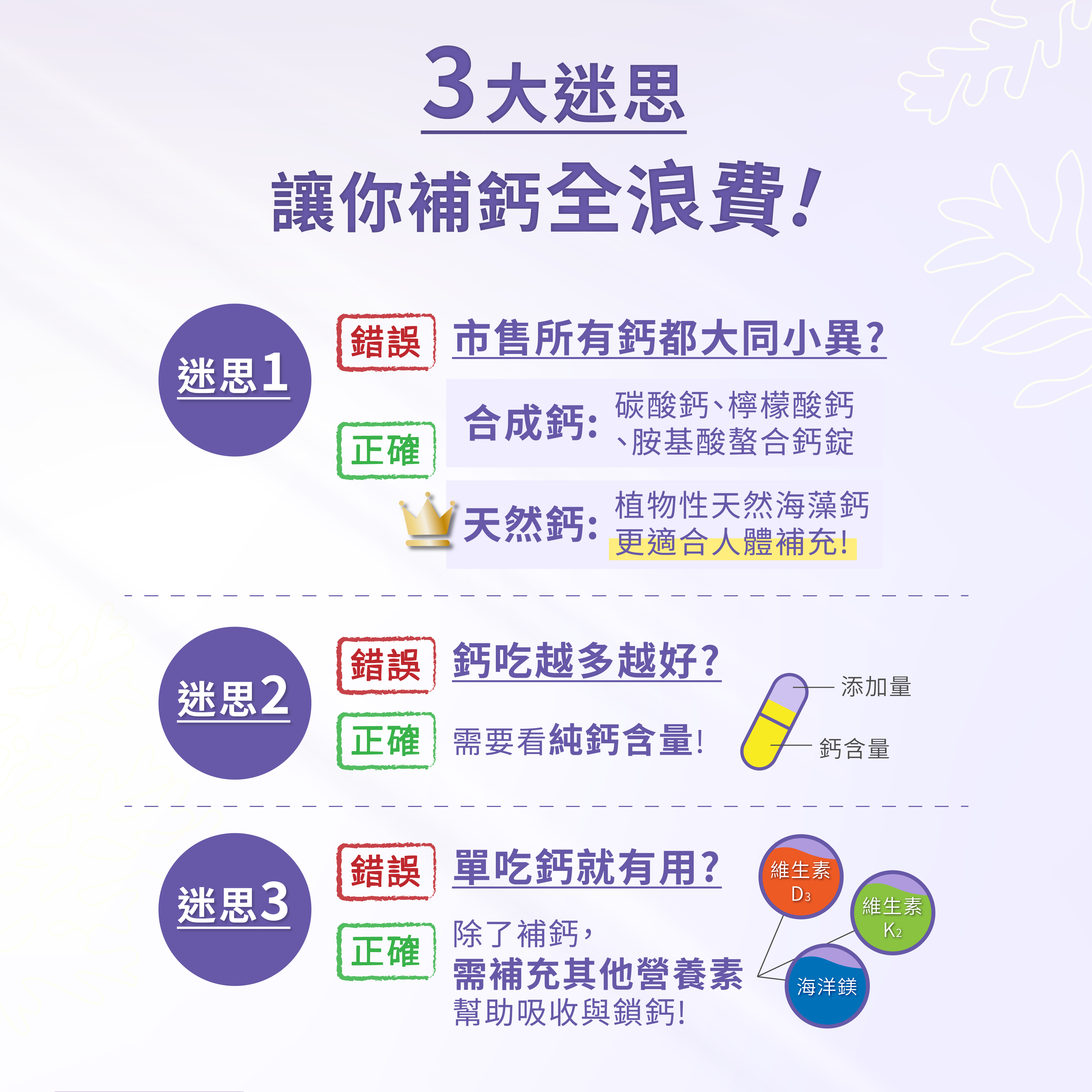 1.使用專利愛爾蘭海藻鈣,補充植萃素食鈣,特殊結構好吸收。