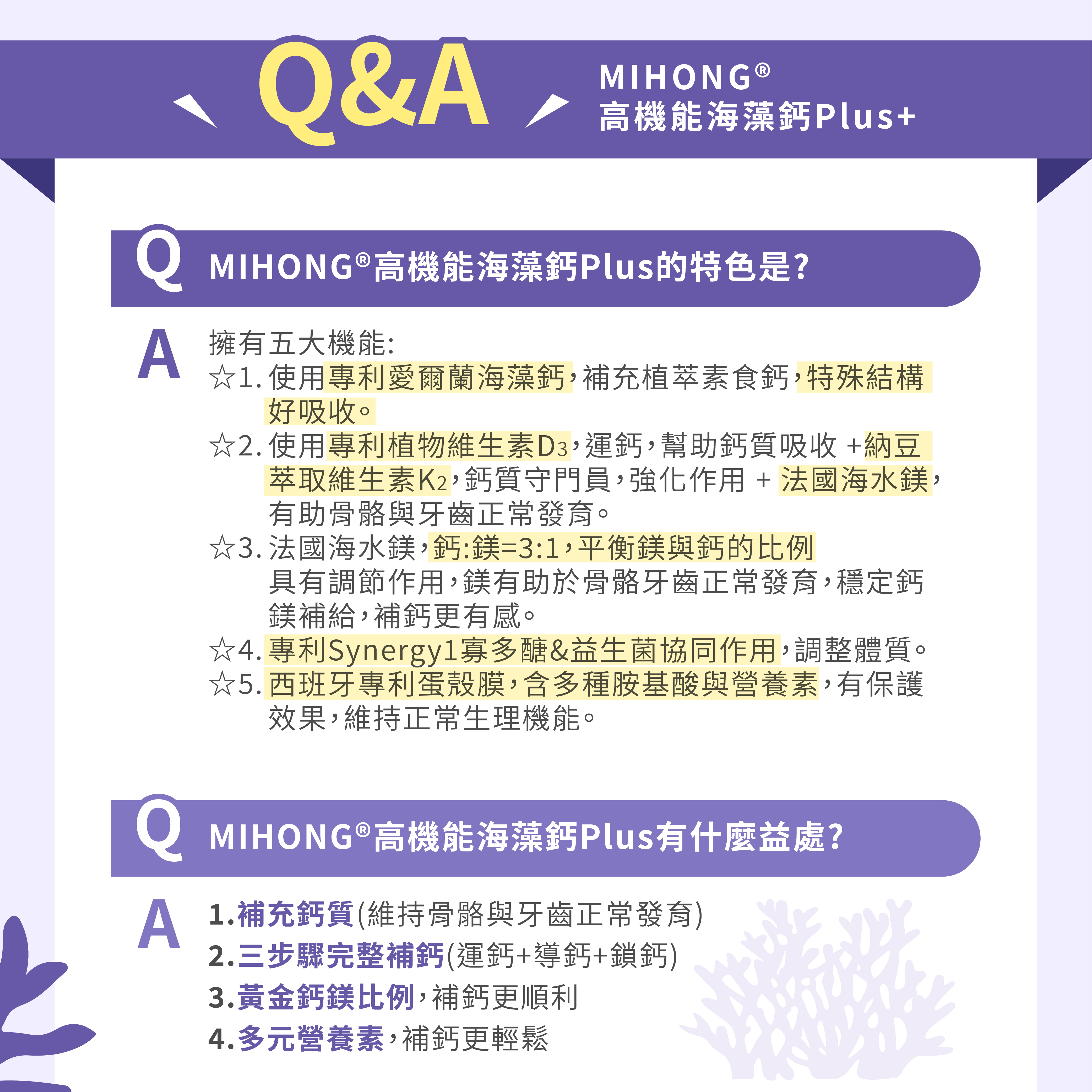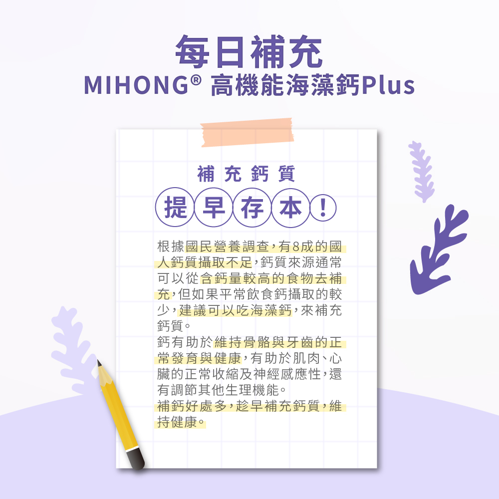 Q1:MIHONG®高機能海藻鈣Plus的特色是?