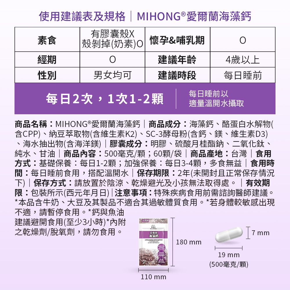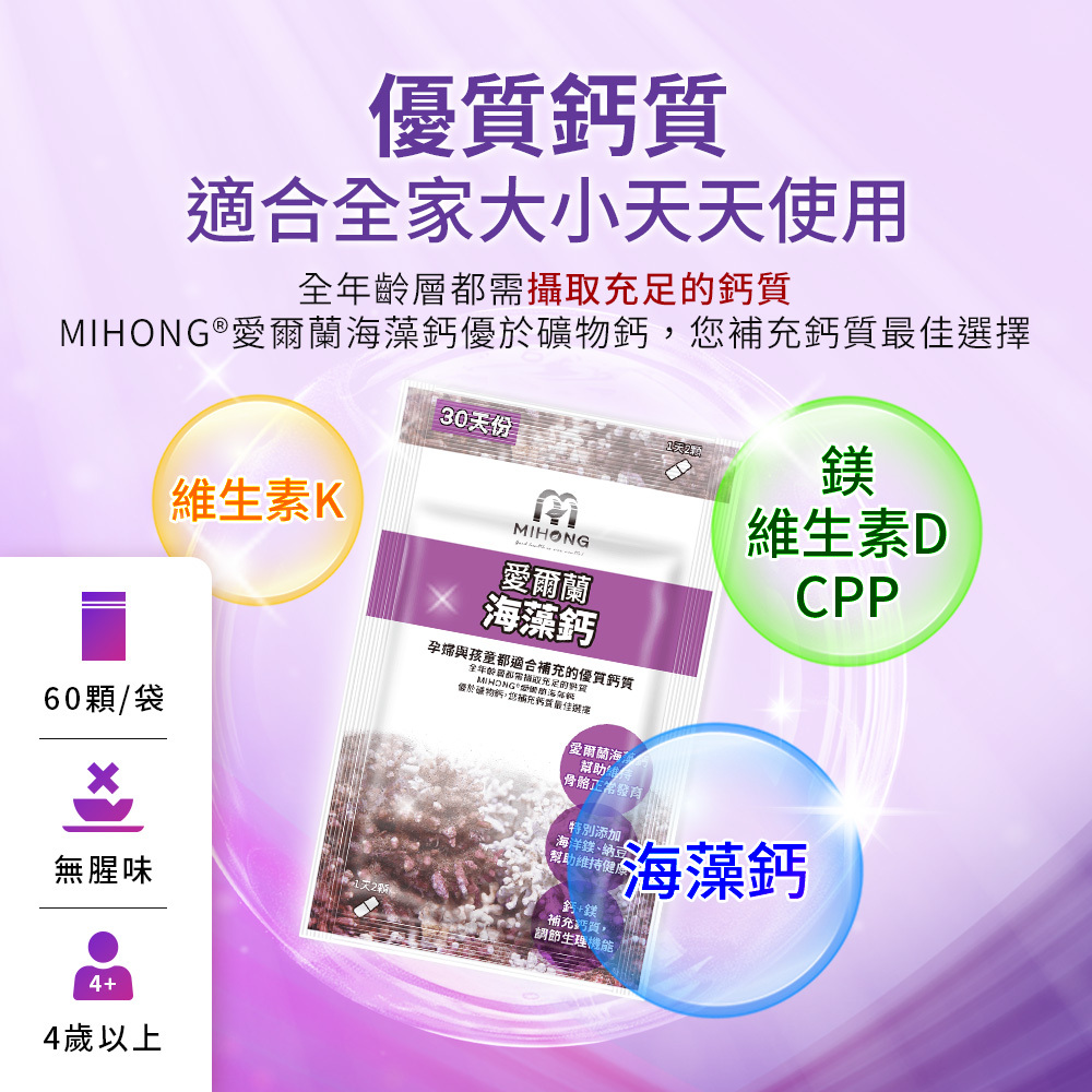 商品名稱:MIHONG®愛爾蘭海藻鈣-全球專利(60/袋)