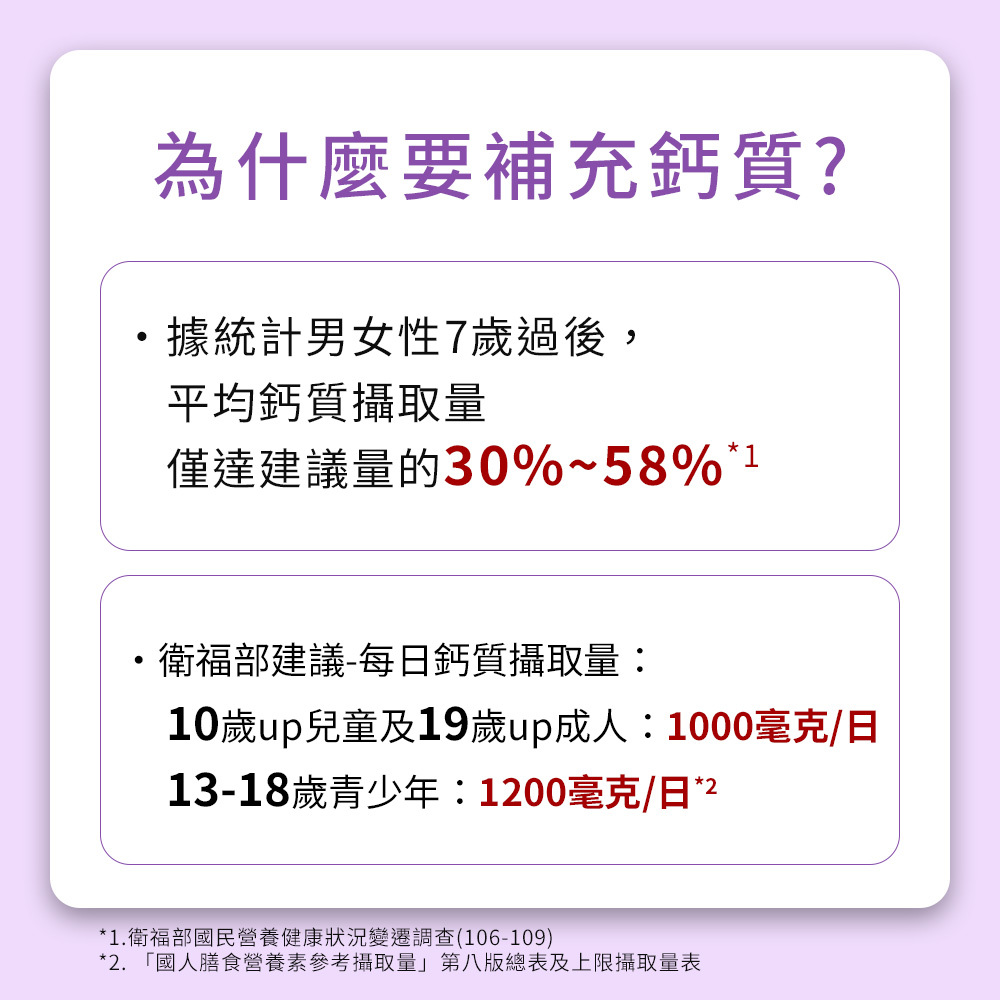 🦴衛福部建議鈣質攝取量: