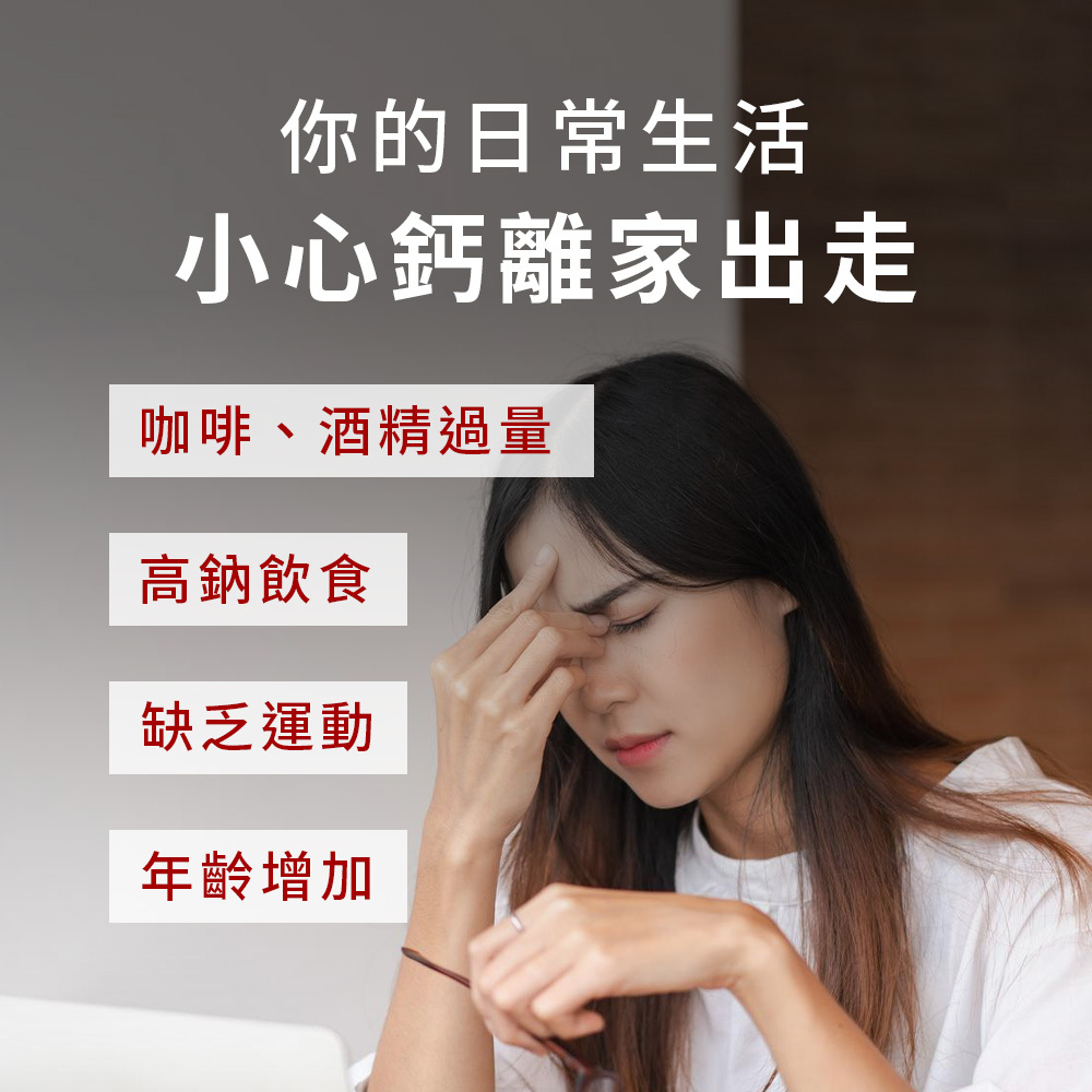 補充足量的鈣質有助於維持骨骼及牙齒的正常發育及健康,並且能幫助血液正常的凝血功能,