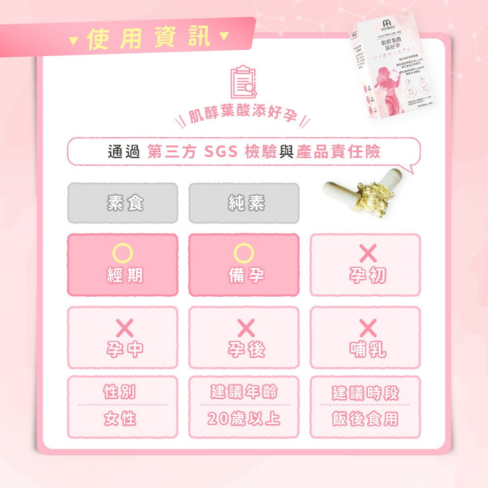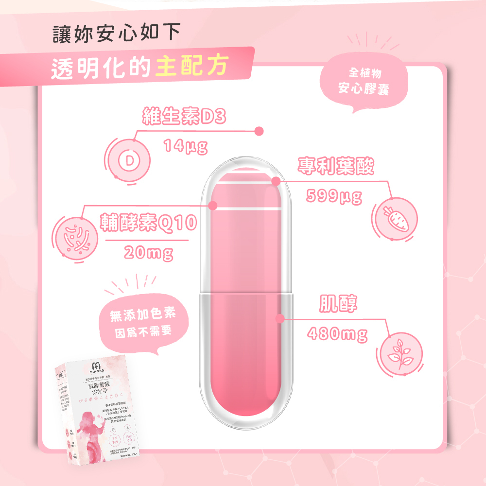 雙效肌醇葉酸幫助媽咪養成好體質,培育合適環境,喜迎寶寶,純素可食!