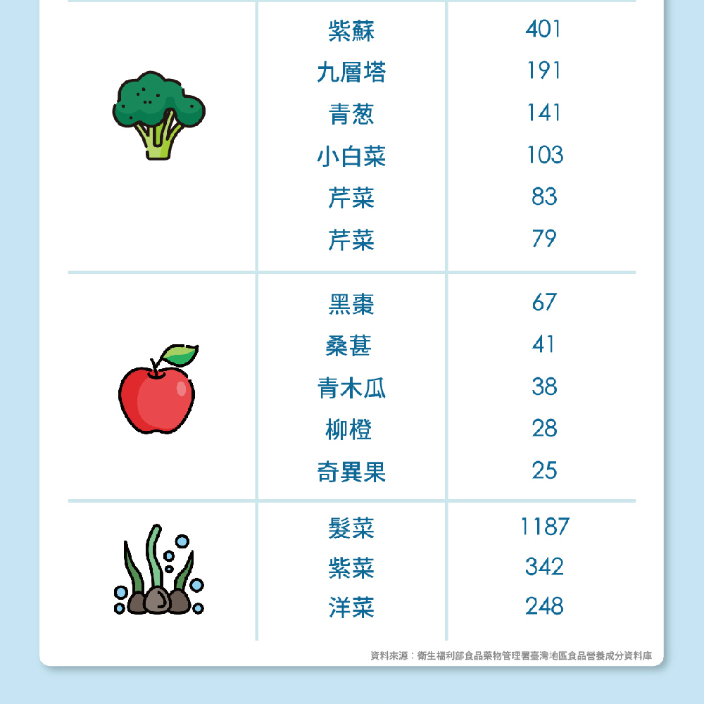 營養標示:每一份量 2 顆,本包裝含30份。每份(熱量 1.2大卡,蛋白質 0.2公克,脂肪(酸) 0公克,飽和脂肪(酸) 0公克,反式脂肪(酸) 0公克,碳水化合物 0.1公克,糖0公克,鈉 1毫克 ,鈣256毫克,鎂22毫克)。每日參考值百分比(1%,1%,0%,0%,*,1%,*,1%,21%,6%,)