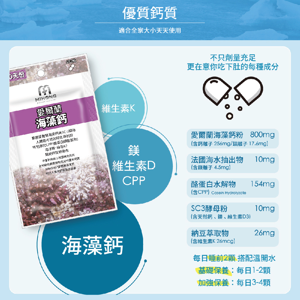 商品名稱:MIHONG®愛爾蘭海藻鈣-全球專利(60顆/包)