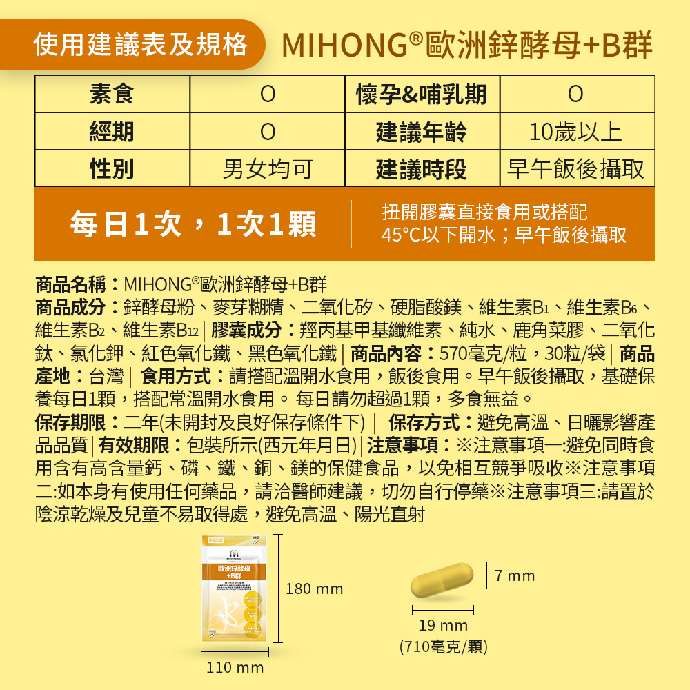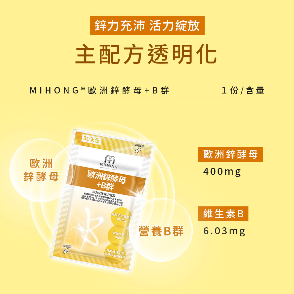【MIHONG®歐洲鋅酵母+B群】滿2件87折,滿3件83折,滿4件81折,滿6件75折,滿8件74折,滿15件69折,滿25件67折