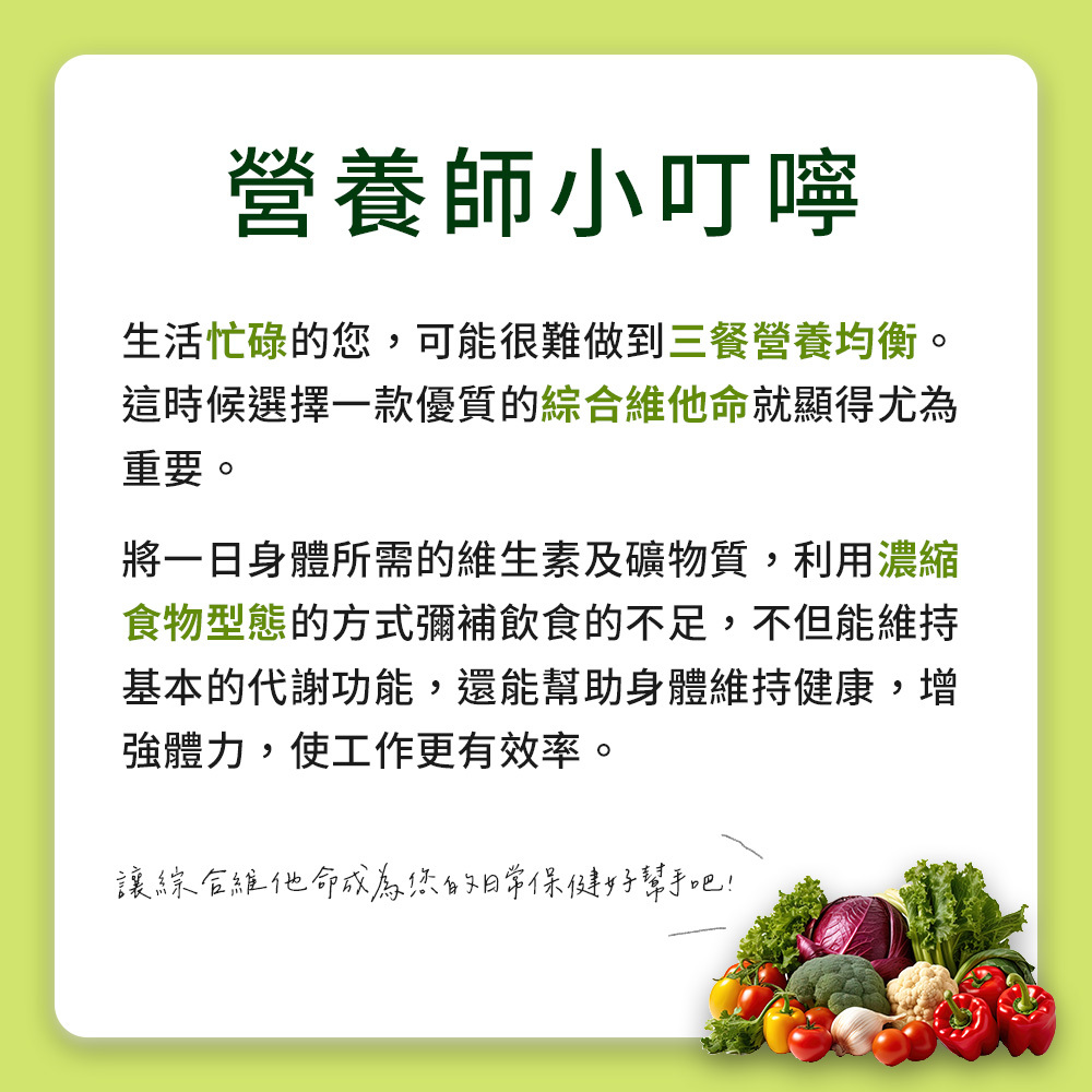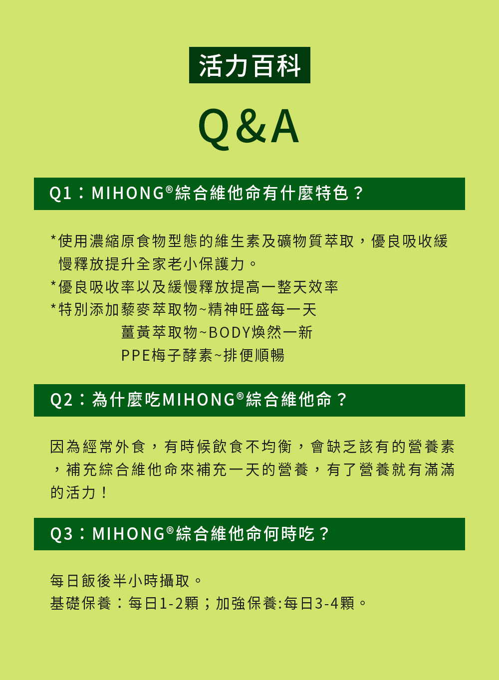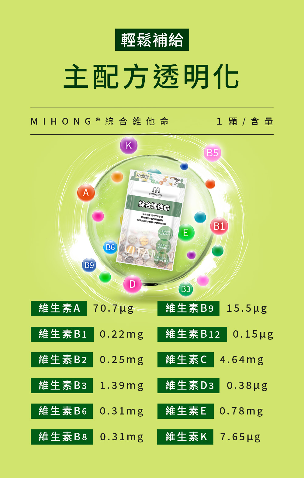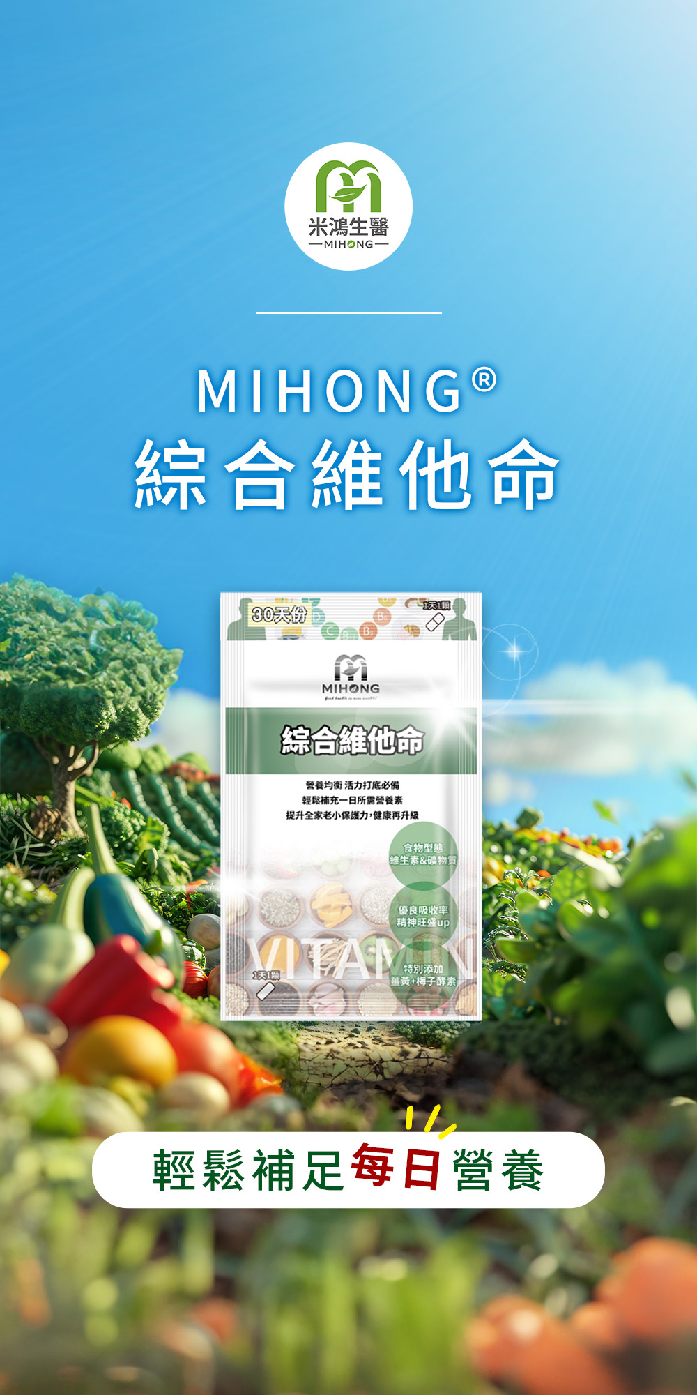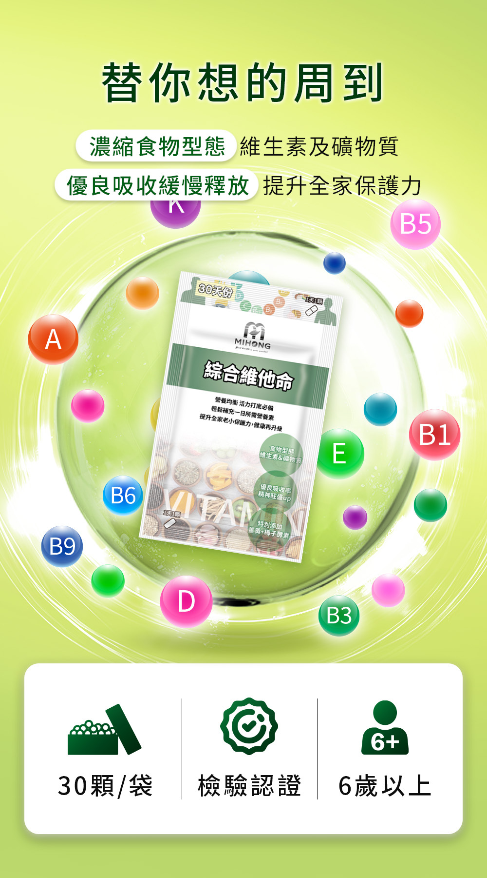 💪MIHONG®綜合維他命替大家想的周到,濃縮食物型態的維生素及礦物質,優良吸收緩慢釋放提升全家老小保護力。