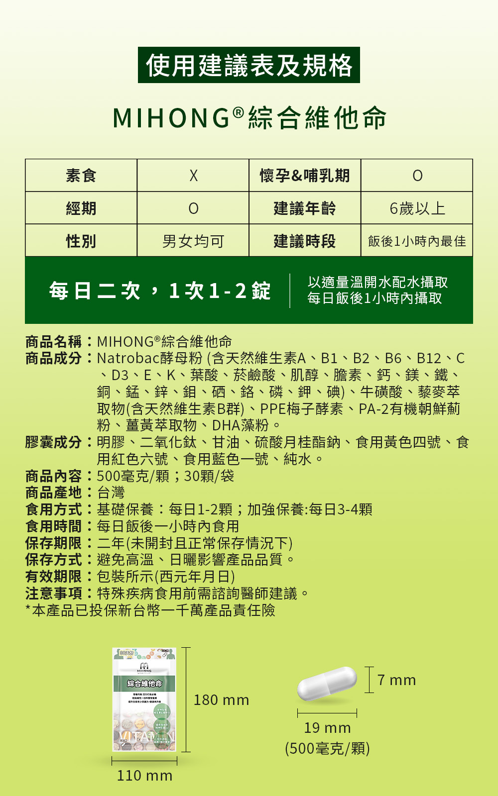 指定商品,【MIHONG®綜合維他命】滿2件88折,滿3件84折,滿4件81折,滿6件75折,滿15件7折,滿25件68折