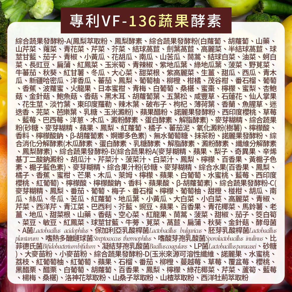 ⭐️真的有酵-百種野菜蔬果VF136專利酵素-完整配方-