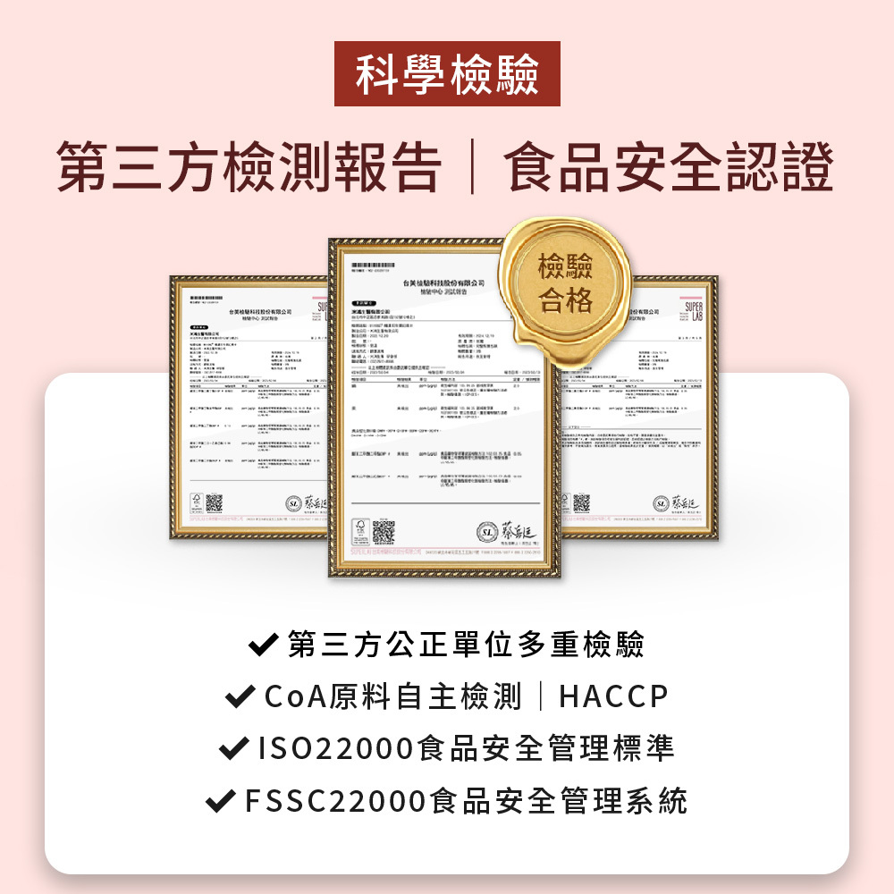 商品成份:膠原蛋白、綜合蔬果發酵物{綜合蔬果發酵粉-A{鳳梨萃取粉、鳳梨酵素、綜合蔬果發酵粉〔白蘿蔔、胡蘿蔔、山藥、山芹菜、蕹菜、青花菜、芹菜、芥菜、結球萵苣、劍葉萵苣、高麗菜、半結球萵苣、球莖甘藍、茄子、青椒、小黃瓜、花胡瓜、南瓜、山苦瓜、茼蒿、結球白菜、油菜、蚵白菜、長豇豆、扁蒲、紅鳳菜、玉米筍、青辣椒、紫地瓜葉、綠地瓜葉、菠菜、野莧菜、牛蕃茄、秋葵、紅甘薯、冬瓜、大心菜、甜菜根、紫高麗菜、生薑、甜瓜、西瓜、青木瓜、新疆哈密瓜、洋香瓜、蕃茄、鳳梨、葡萄柚、柳橙、柑橘、茂谷柑、番石榴、葡萄、香蕉、波蘿蜜、火龍果、日本蜜柑、青梅、白葡萄、桑椹、蜜棗、檸檬、蜜梨、杏鮑菇、金針菇、鮑魚菇、香菇、黑木耳、胡蘿蔔葉、五葉松、咸豐草、石蓮花、仙人掌果、花生莖、淡竹葉、東印度羅勒、辣木葉、破布子、枸杞、薄荷葉、香蘭、魚腥草、迷迭香、芫菜、芭樂葉、乳糖、玉米澱粉〕、蘋果醋粉、諾麗果發酵粉、西印度櫻桃、草莓、藍莓、巴西莓、洋蔥、木瓜、澱粉酵素、蛋白酵素、解脂酵素)、麥芽糊精、綜合蔬果粉〔砂糖、麥芽糊精、蘋果、鳳梨、紅蘿蔔、橘子、蕃茄泥、氧化澱粉(樹薯)、檸檬酸、香料、檸檬酸鈉、β-胡蘿蔔素、婀娜多色素〕、無水葡萄糖、抹茶粉、諾麗果發酵粉、綜合消化分解酵素〔木瓜酵素、蛋白酵素、乳糖酵素、解脂酵素、澱粉酵素、纖維分解酵素、鳳梨酵素〕}、綜合蔬果發酵粉-B (綜合蔬果粉A(麥芽糊精、蘋果、梨子、奇異果、辛烯基丁二酸鈉澱粉、胡瓜汁、芹菜汁、菠菜汁、白菜汁、鳳梨、檸檬、百香果、黃槴子色素、槴子藍色素)、麥芽糊精、綜合果汁粉〔砂糖、麥芽糊精、綜合水果(百香果、鳳梨、橘子、香蕉、蜜柑、芒果、木瓜、萊姆、檸檬、蘋果、白葡萄、水蜜桃、藍莓、西印度櫻桃、紅葡萄)、檸檬酸、檸檬酸鈉、香料、蘋果酸、β-胡蘿蔔素〕、綜合蔬果發酵粉-C(麥芽糊精、鳳梨、番茄、葡萄、梅子、番石榴、檸檬、葡萄柚、甜橙、椪柑、胡瓜、南瓜、絲瓜、冬瓜、苦瓜、紅蘿蔔、地瓜葉、小黃瓜、大白菜、小白菜、高麗菜、青椒、芹菜、西洋芹、青江菜、巴西利、芥藍、豌豆、蘋果、百香果、青花椰菜、馬鈴薯、老薑、地瓜、甜菜根、山藥、香菇、空心菜、紅龍果、茼蒿、菠菜、甜椒、茄子、筊白筍、菜豆、敏豆、紅鳳菜、球莖甘藍、牛蒡、莧菜、萵苣、扁蒲、秋葵、金針菇、酵母菌、A菌Lactobacillus acidophilus、保加利亞乳酸桿菌Lactobacillus bulgaricus、胚芽乳酸桿菌Lactobacillus plantarum、嗜熱多醣鏈球菌Streptococcus thermophilus、嗜酸芽孢乳酸菌Sporolactobacillus inulinus、比菲德氏菌Bifidobacterium bifidum、凝結芽孢乳酸菌Bacillus coagulans、LP菌Lactobacillus paracasei、砂糖)、大麥苗粉、小麥苗粉、綜合蔬果發酵粉-D〔(玉米來源可溶性纖維、諾麗果、水蜜桃、荔枝、紅葡萄柚、紅葡萄、蘋果、石榴、番茄、柳橙、蔓越莓、草莓、覆盆莓、櫻桃、黑醋栗、醋栗、白葡萄、胡蘿蔔、百香果、鳳梨、檸檬、綠花椰菜、芹菜、蘆筍、藍莓、楊梅、桑椹)、洛神花萃取粉、山桑子萃取粉、山楂萃取粉、西洋牡荊萃取粉〕、維生素C、微結晶狀α-纖維素、綜合維生素 B 群〔麥芽糊精、乳糖、核黃素、維生素 B6(鹽酸吡哆辛)、菸鹼醯胺、維生素B1(硝酸硫胺明)、維生素B12(麥芽糊精、檸檬酸鈉、檸檬酸、維生素 B12)、本多酸鈣、葉酸、生物素〕、二氧化矽