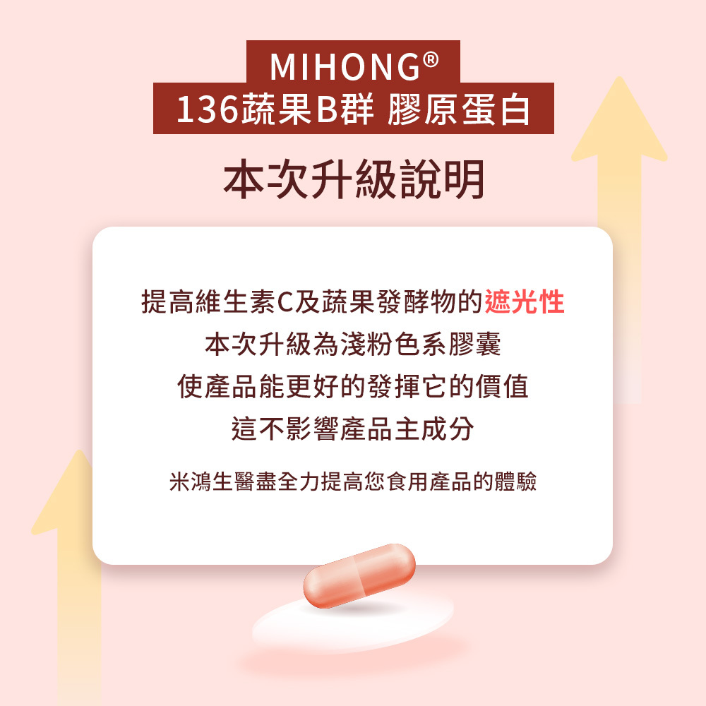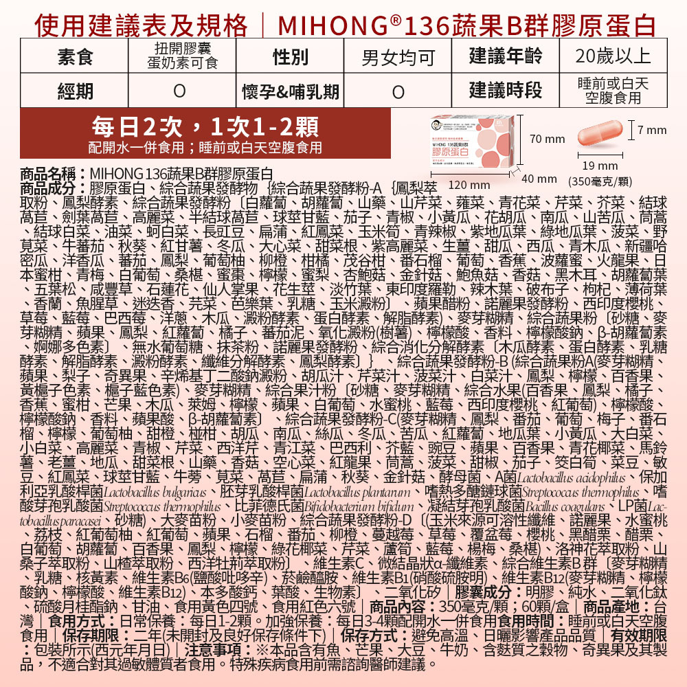指定商品,【MIHONG® 136蔬果B群 膠原蛋白】滿2件88折,滿3件84折,滿4件81折,滿6件75折,滿15件7折,滿25件68折
