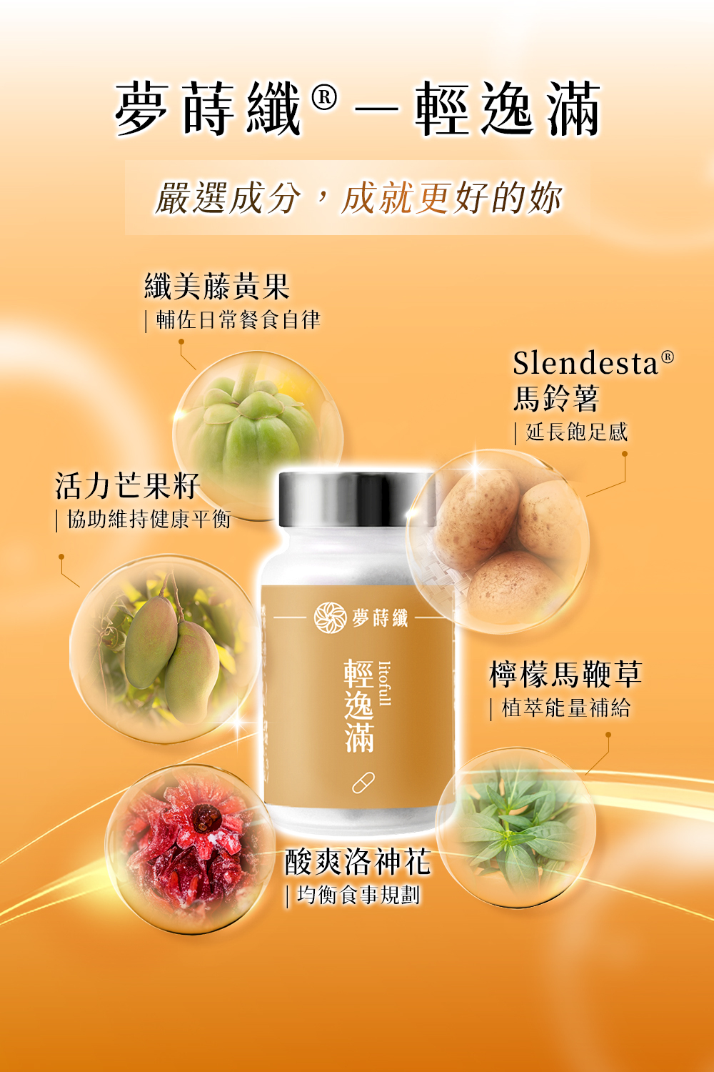 藤黃果萃取+美國馬鈴薯萃取+檸檬馬鞭草萃取+洛神花萃取