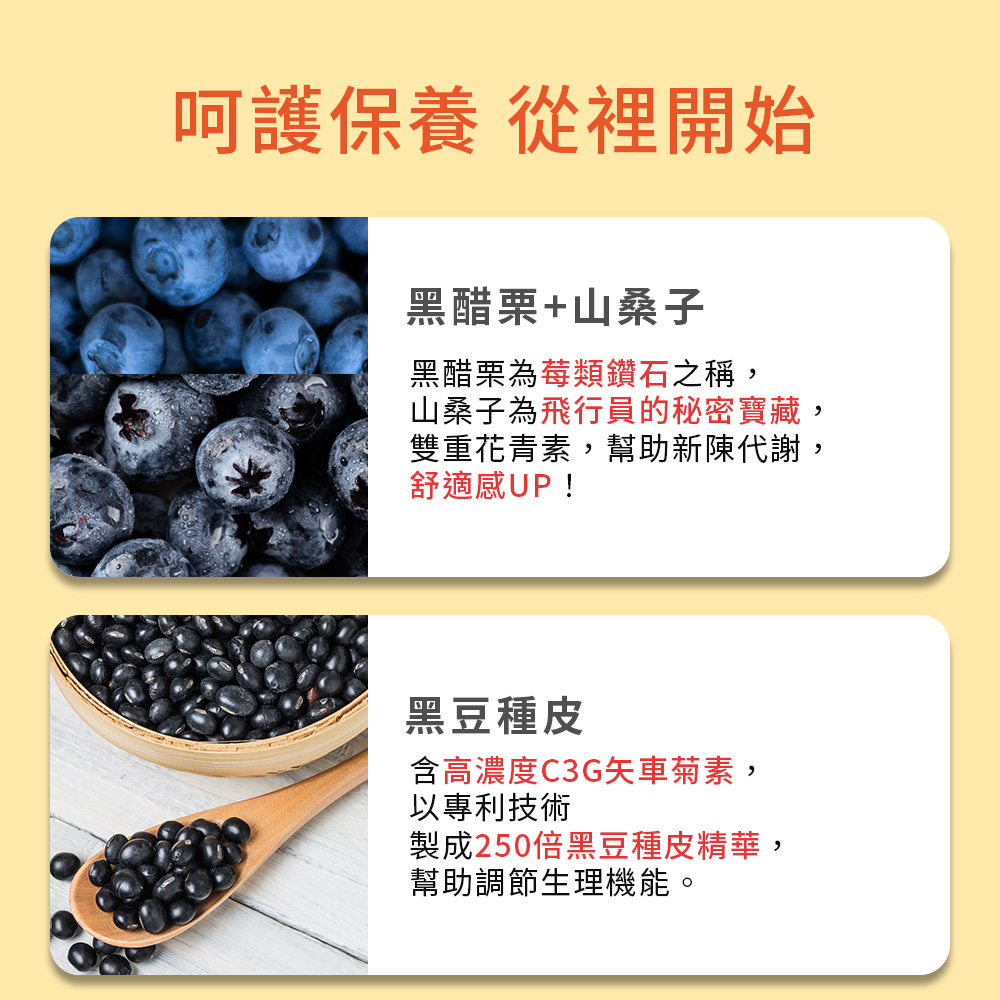 雙重花青素 - 嚴選黑醋栗及山桑子,雙重花青素!