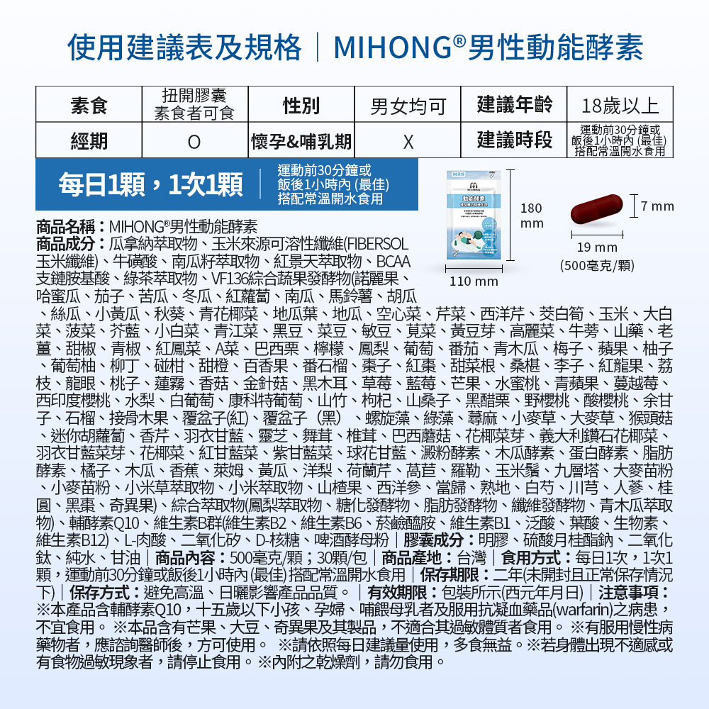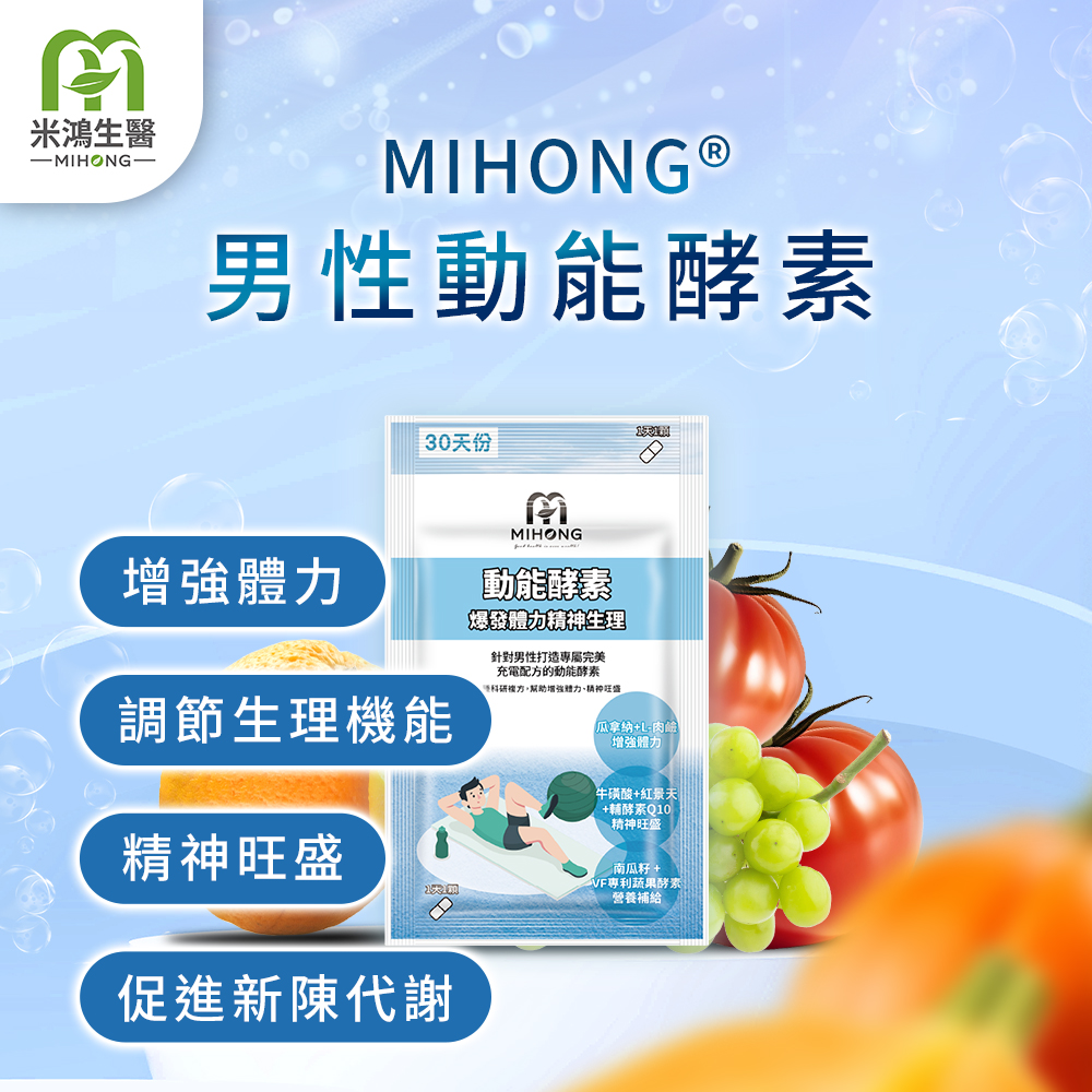 MIHONG®針對男性打造專屬完美充電配方的動能酵素,使你強身代謝up,支持你,全力以赴的動!