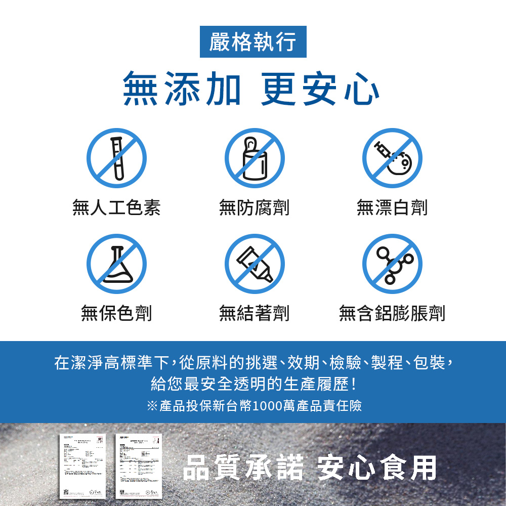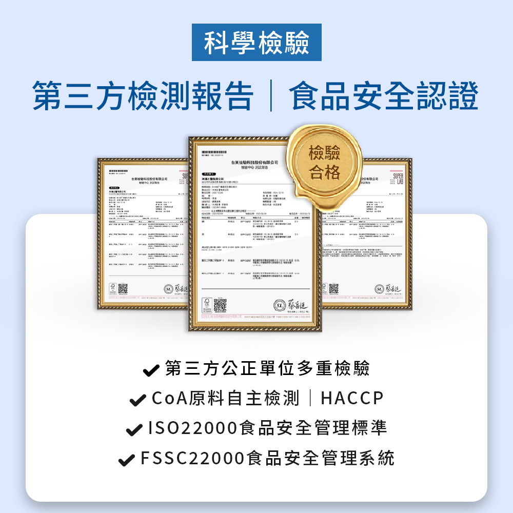通過HACCP、ISO與COA檢驗,投保產品責任險1000萬