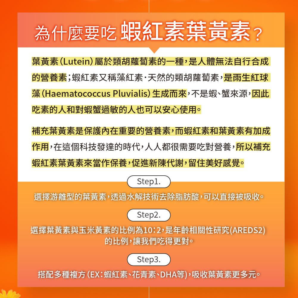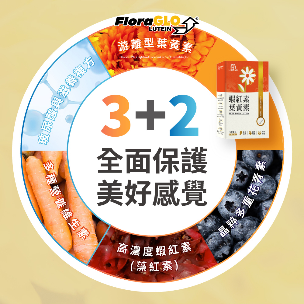 A:MIHONG®蝦紅素葉黃素有3+2特色: