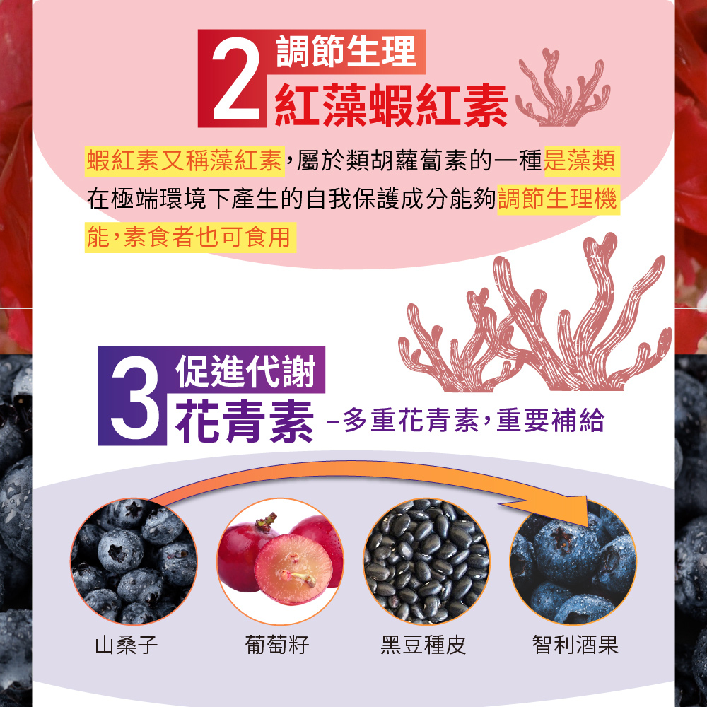 高濃度蝦紅素~有極佳的保護力,調節生理,素食者安心吃!