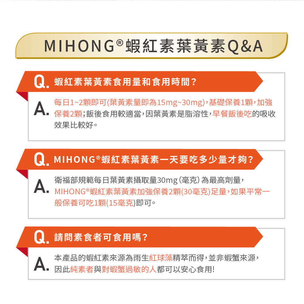 Q:MIHONG®蝦紅素葉黃素一天要吃多少量才夠?