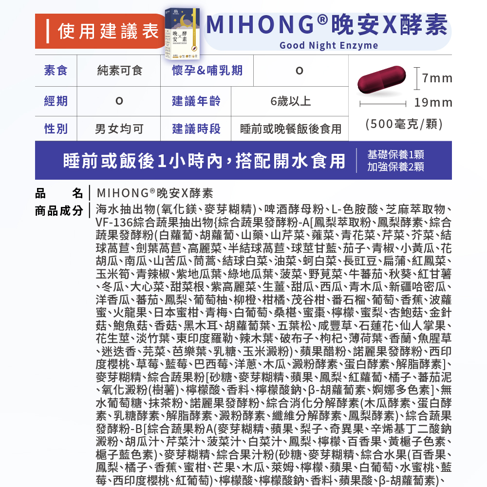MIHONG®晚安X酵素(30顆/盒)