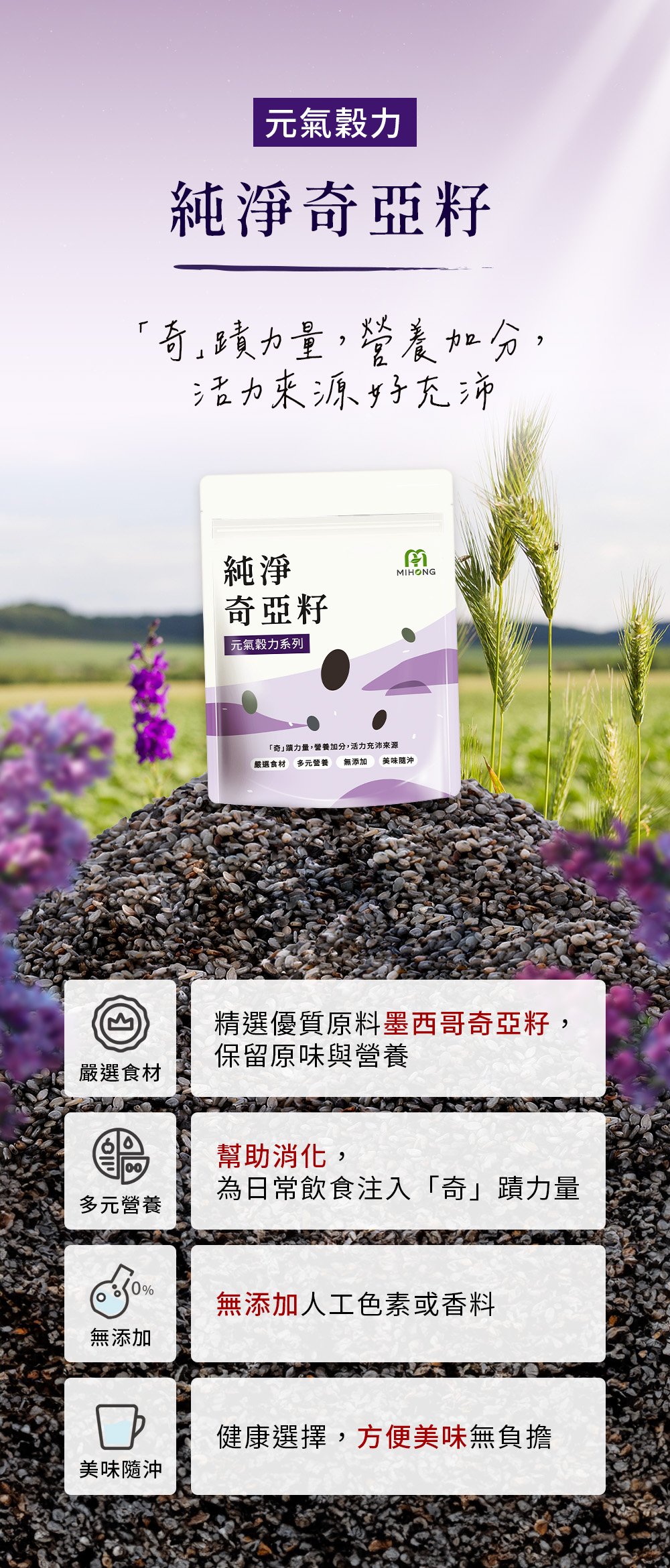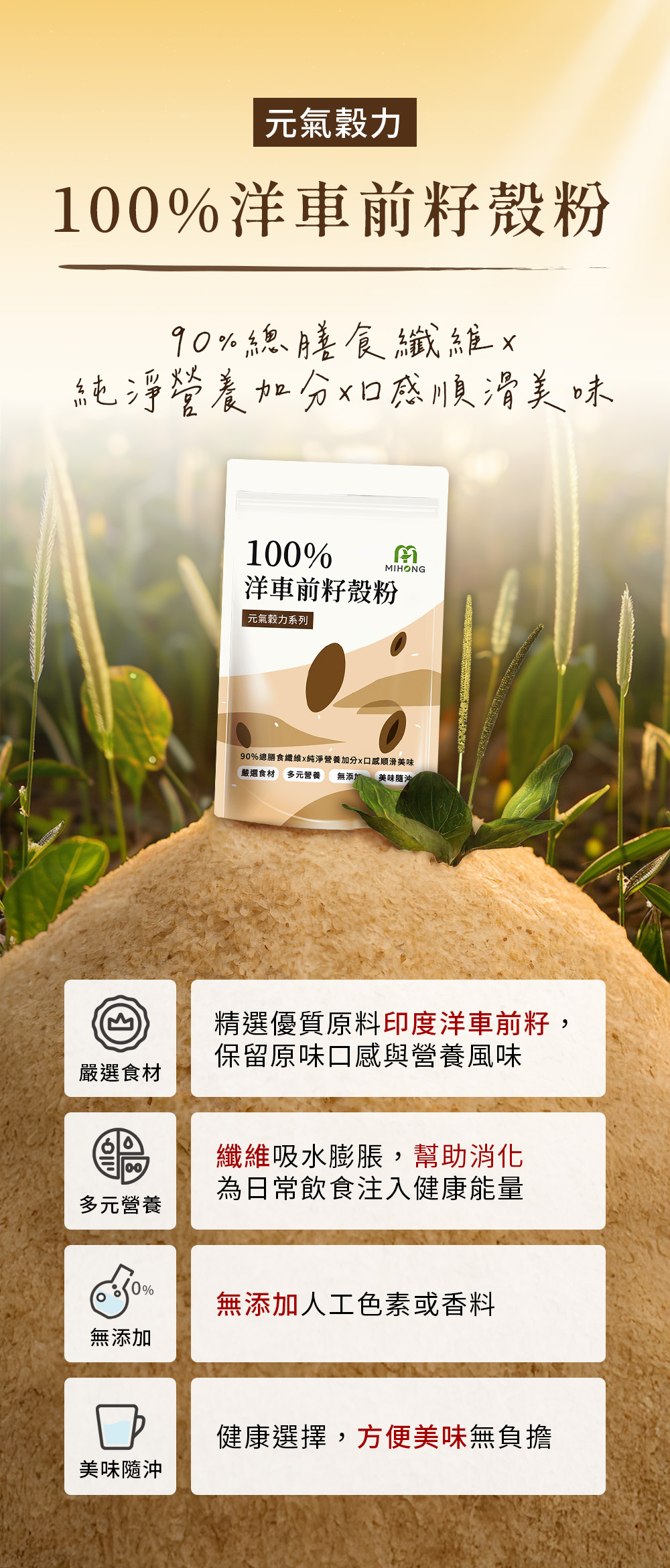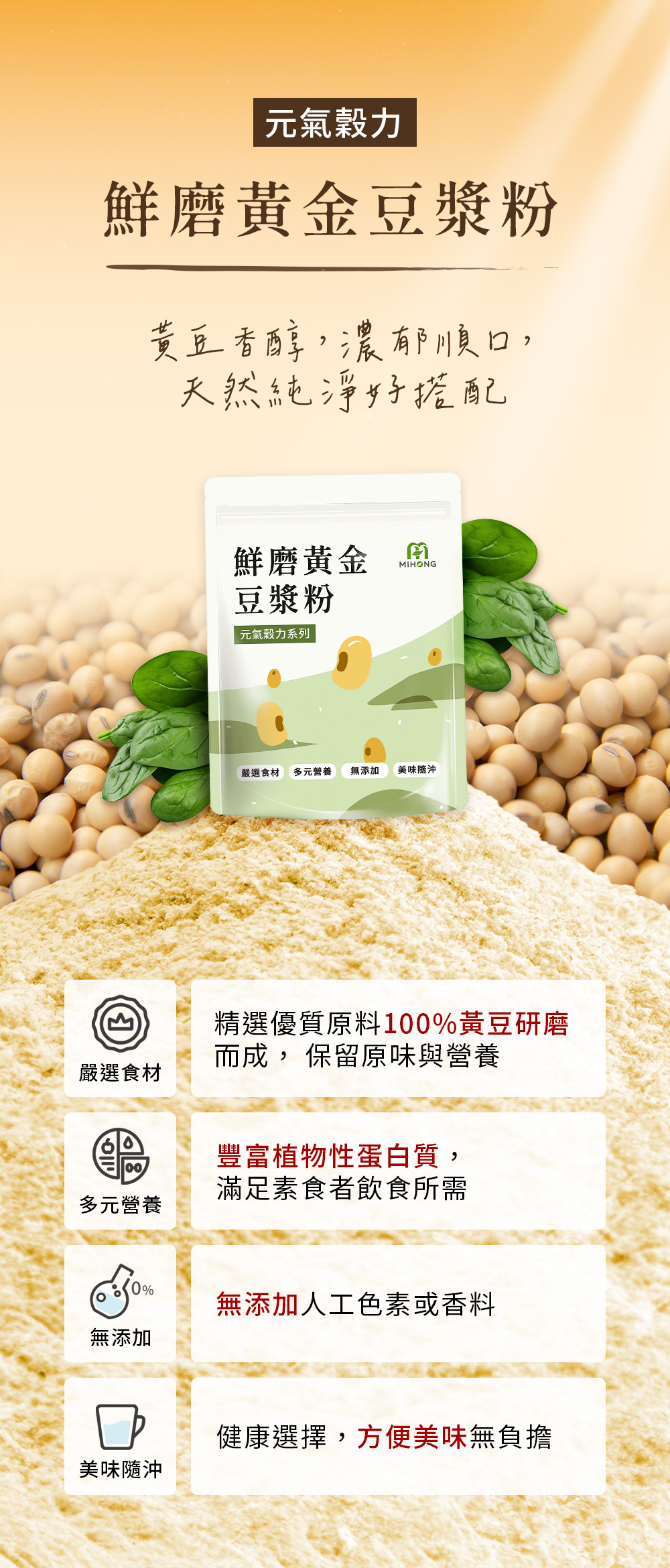 MIHONG®元氣穀力系列:主打嚴選食材、多元營養、無添加、美味隨沖,讓你在喝美味百卡小農飲時不無聊,能夠隨心自在搭配不同的顆粒感榖物,除了美味口感加倍以外,更能夠一次攝取到更多元的健康元素。
