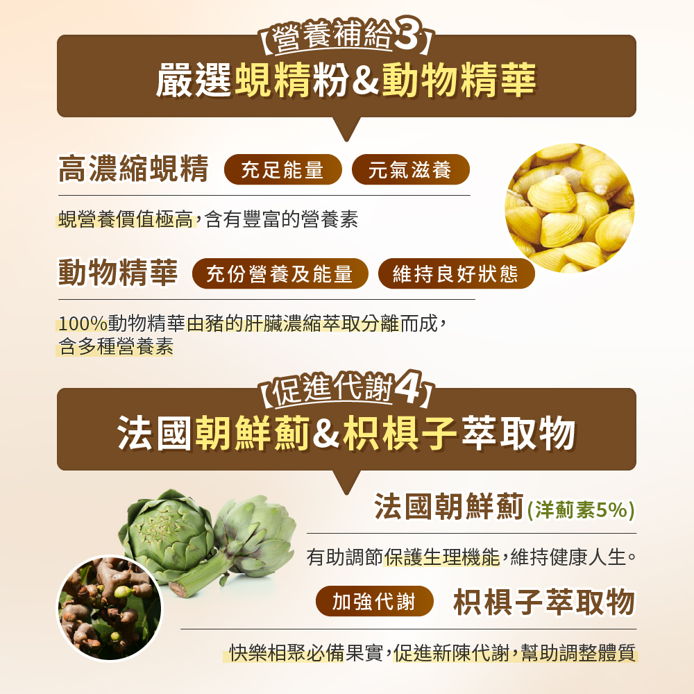 ⭐蜆精粉 (肝醣20%):蜆營養價值極高,含有膽鹼、肝醣、維生素B群、鋅、牛胺酸等豐富的營養素,能有效補給身體充足能量,元氣滋養。