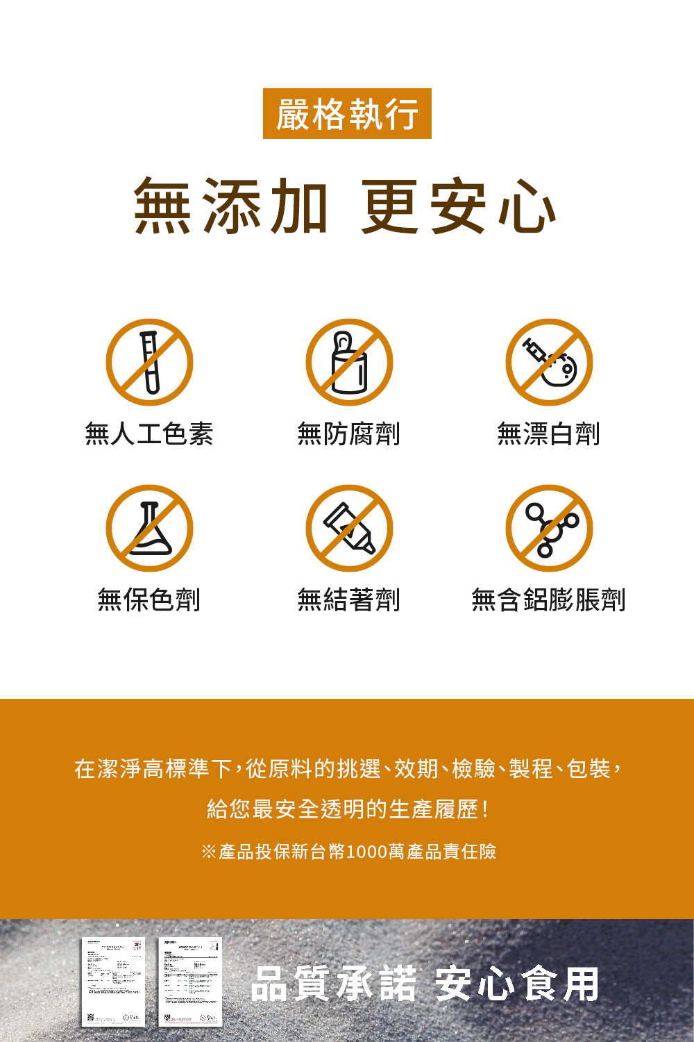 無 添 加-主打無添加人工色素、香料、防腐劑,自然少負擔。