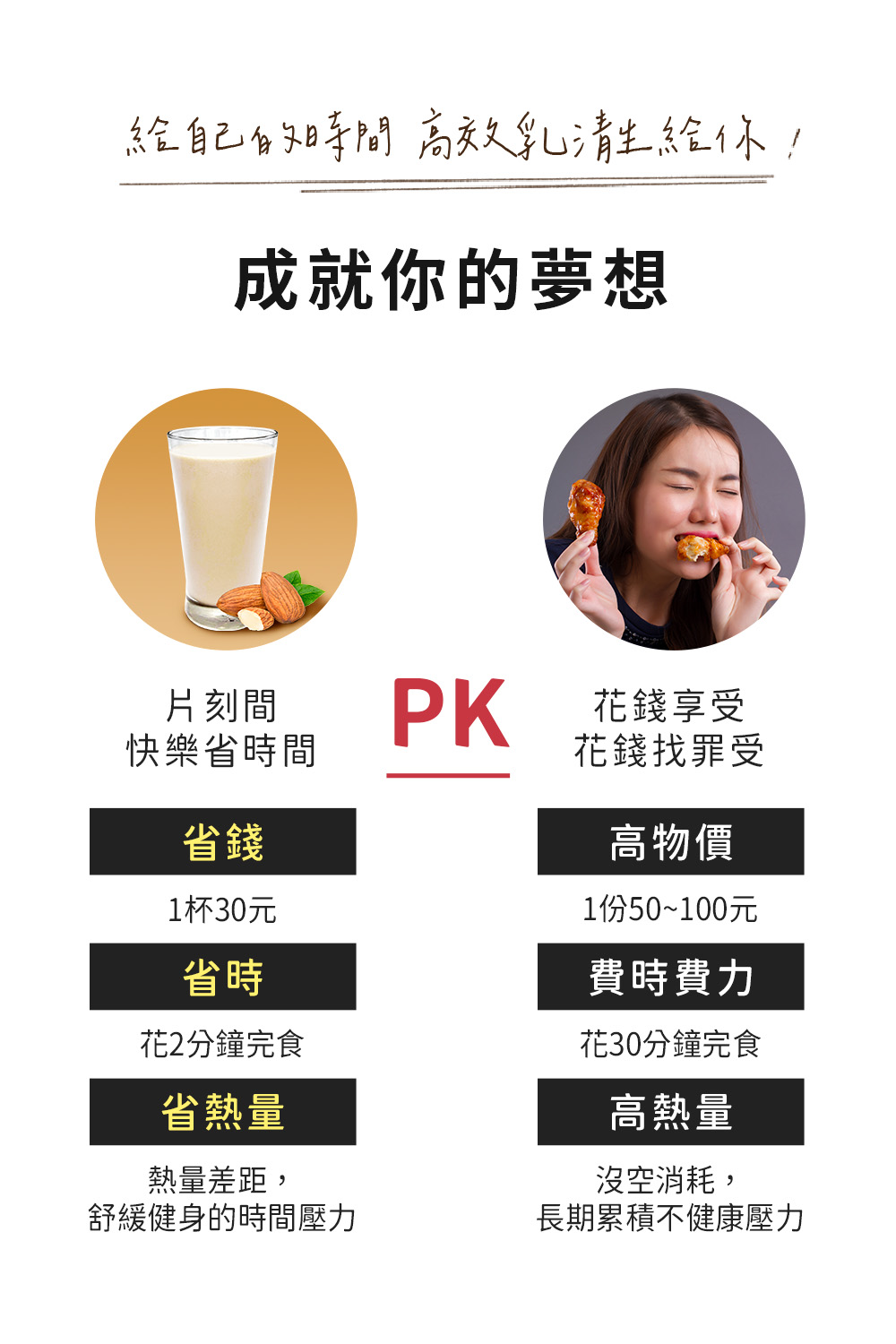 清香杏仁-特選優質杏仁堅果,搭配優質乳清蛋白,淡淡清香,是美味百卡的飽足小農蛋白飲。