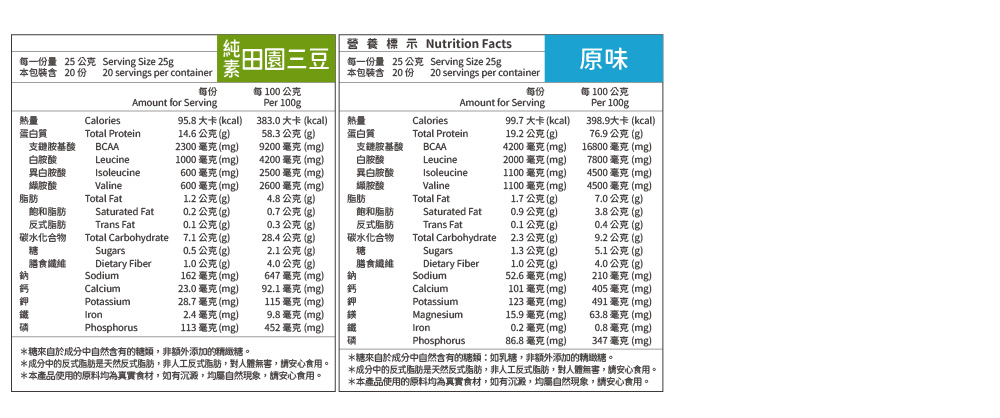 田園三豆(燕麥奶):分離大豆蛋白(含大豆卵磷脂)、三豆粉(黑豆粉、紅豆粉、綠豆仁粉)、水解燕麥粉、玉米來源可溶性纖維、關華豆膠、二氧化矽、甜味劑(醋磺內酯鉀、蔗糖素)
