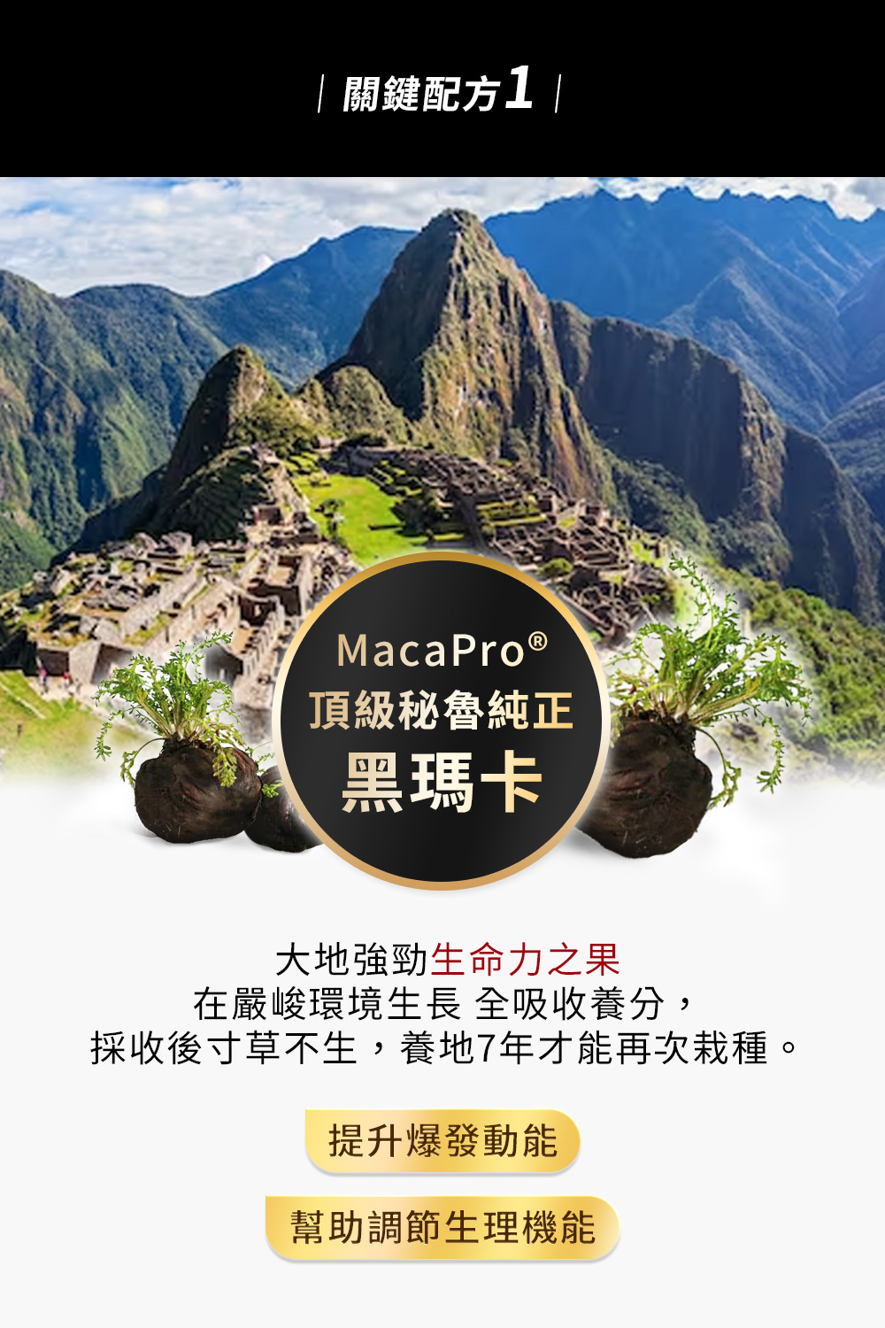 MacaPro®專利6倍濃縮黑紅瑪卡~採用6:1濃縮萃取珍貴深色瑪卡,濃縮精純營養素。