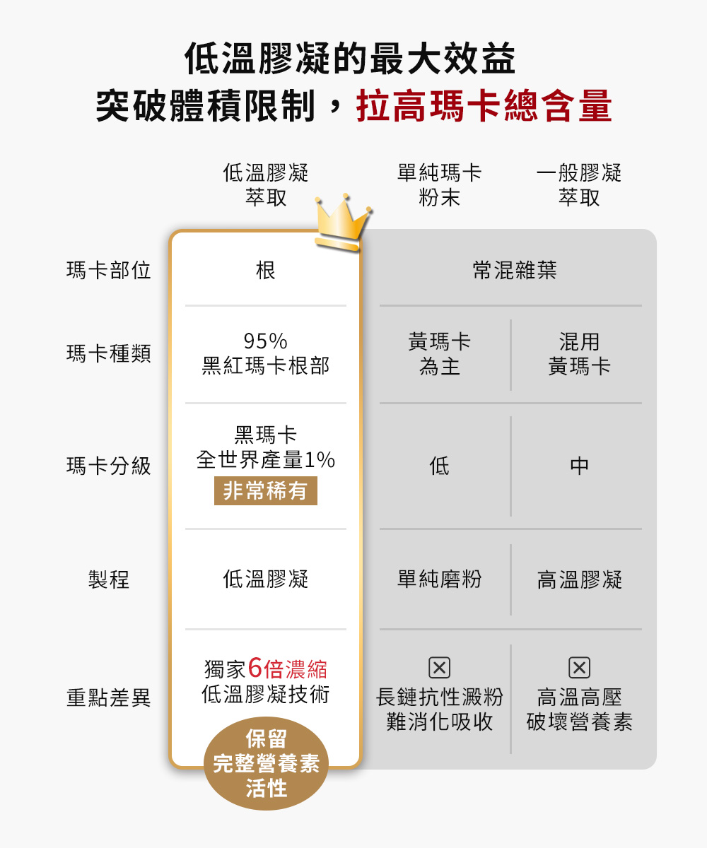 專利黑紅瑪卡~以獨特低溫糊化技術,濃縮萃取,效果更好吸收。