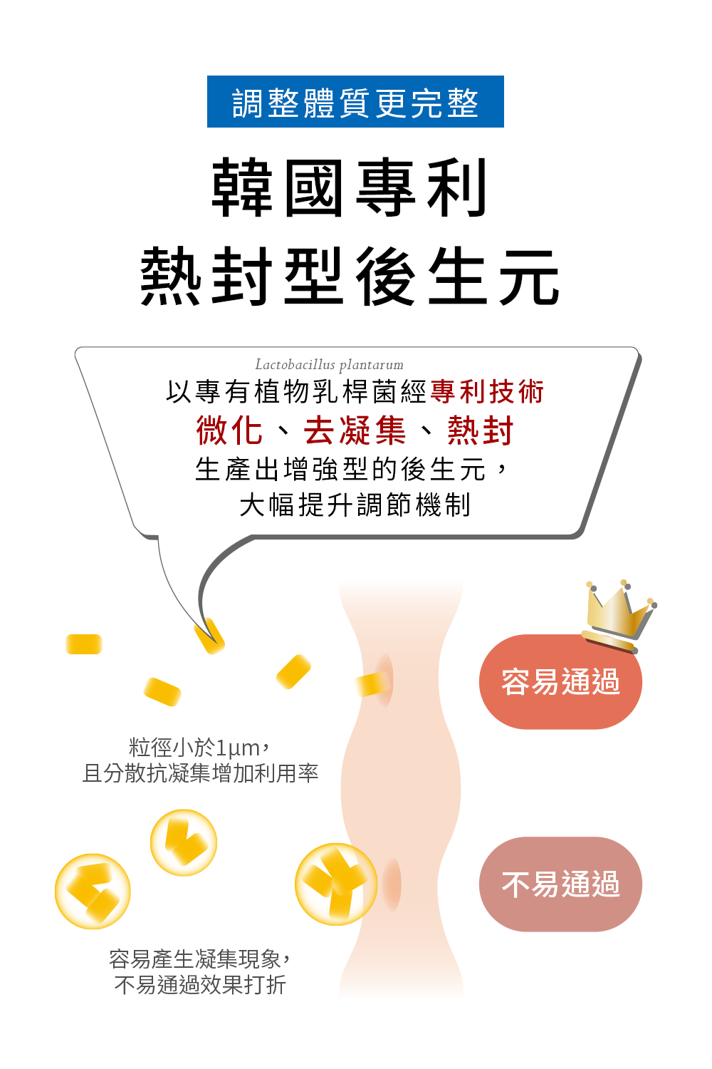 4. 添加熱封型後生元->將乳酸菌富有的營養價值,再次精粹為有效成分,讓調整體質更完整。
