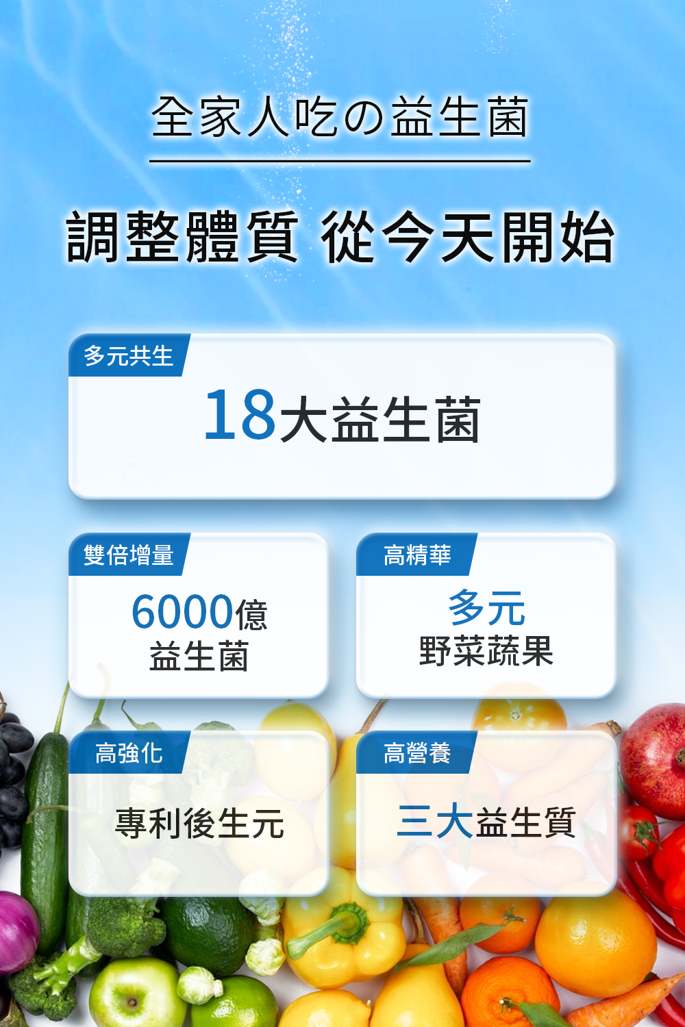 ⭐️四大升級-菌株豐富、菌數提升雙倍、蔬果種類增加、添加後生元與膳食纖維