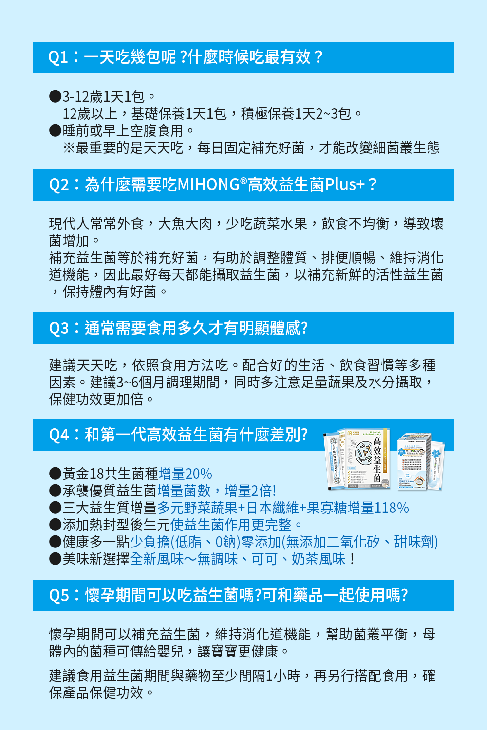 Q5:懷孕期間可以吃MIHONG®高效益生菌Plus嗎??