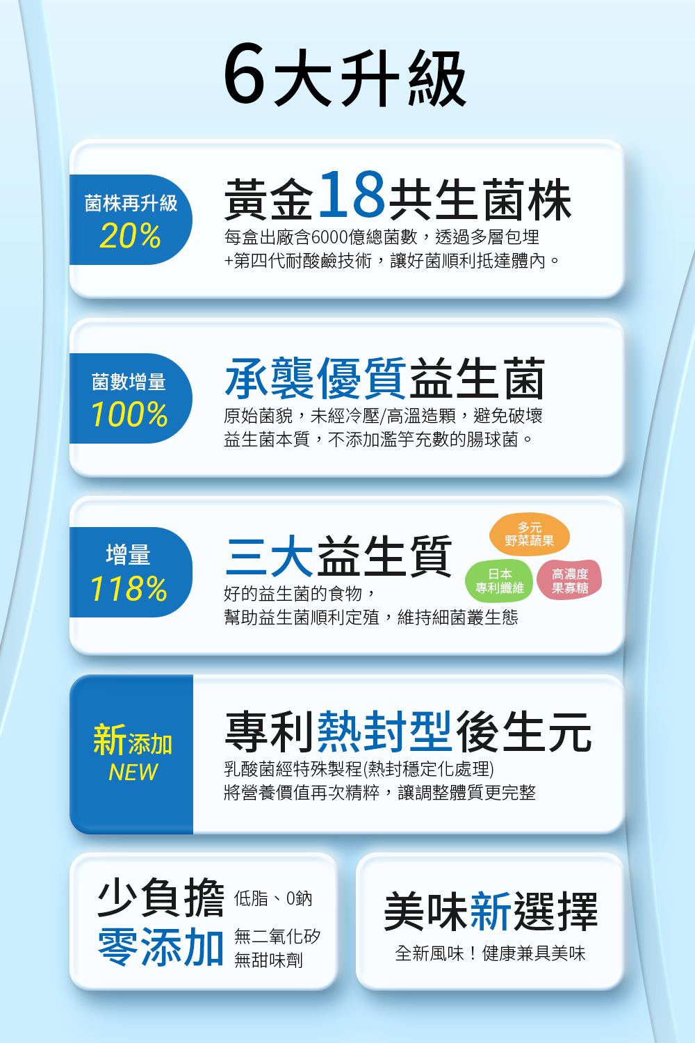 1.黃金18共生菌種->增量20%,菌種再升級,好菌更多元