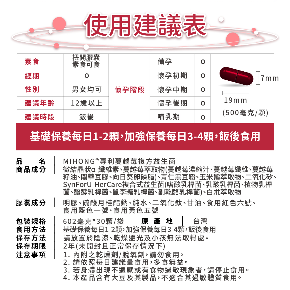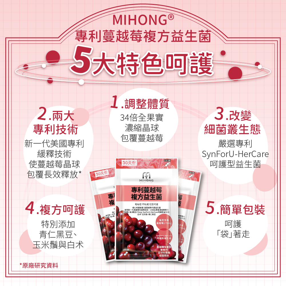 MIHONG® 專利蔓越莓複方益生菌(30顆/包)
