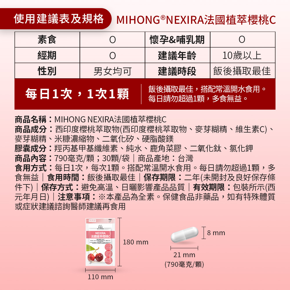 MIHONG® NEXIRA法國植萃櫻桃C(30顆/袋)