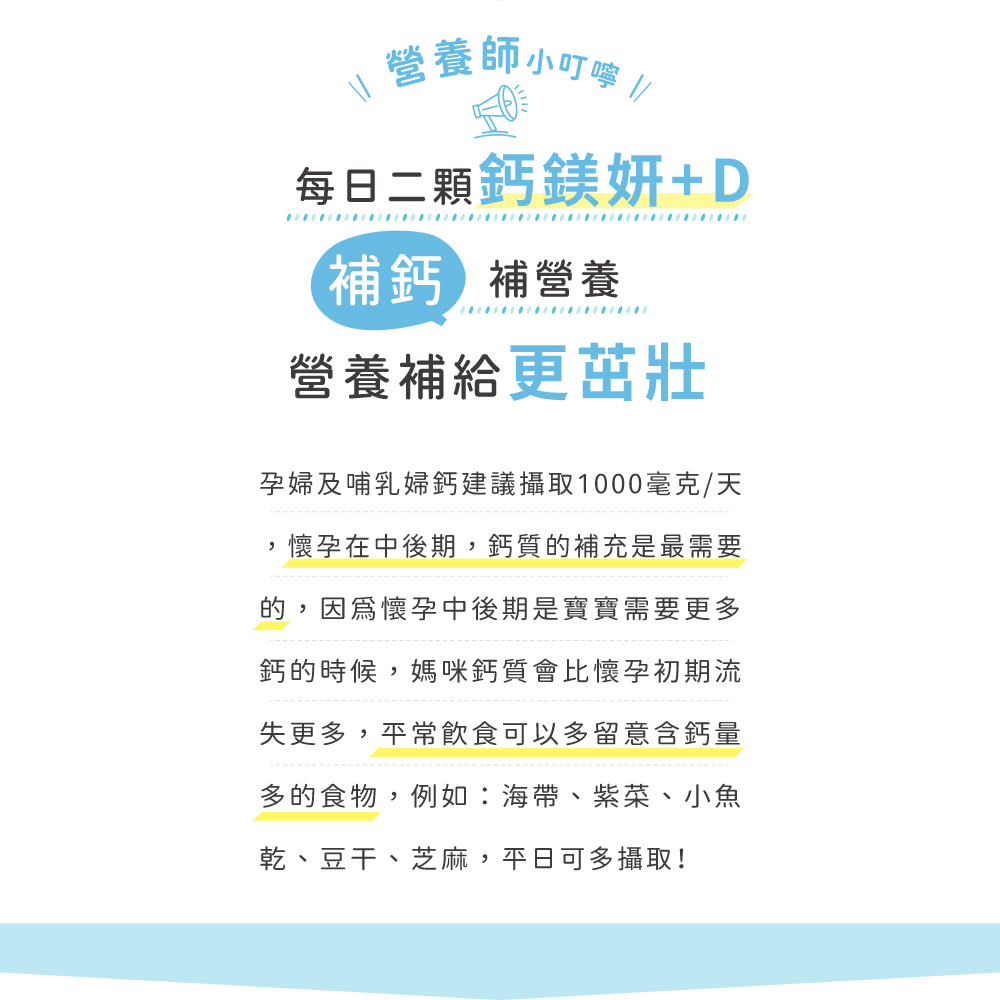 正好是寶寶骨骼牙齒發育的時候也是寶寶快速發育的時候,所以媽咪需要鈣質的量比平常還要多。