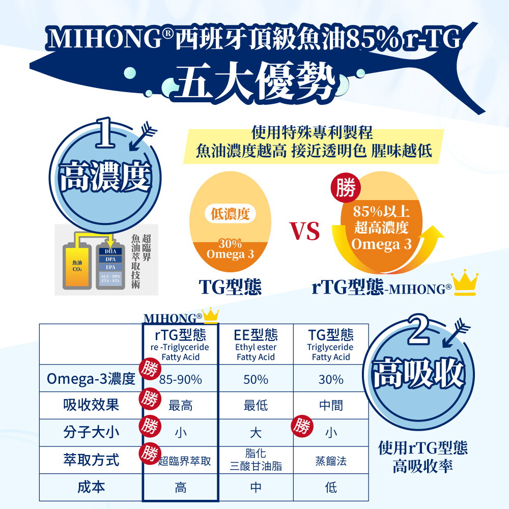 MIHONG® 西班牙頂級魚油85% r-TG(30顆/盒)