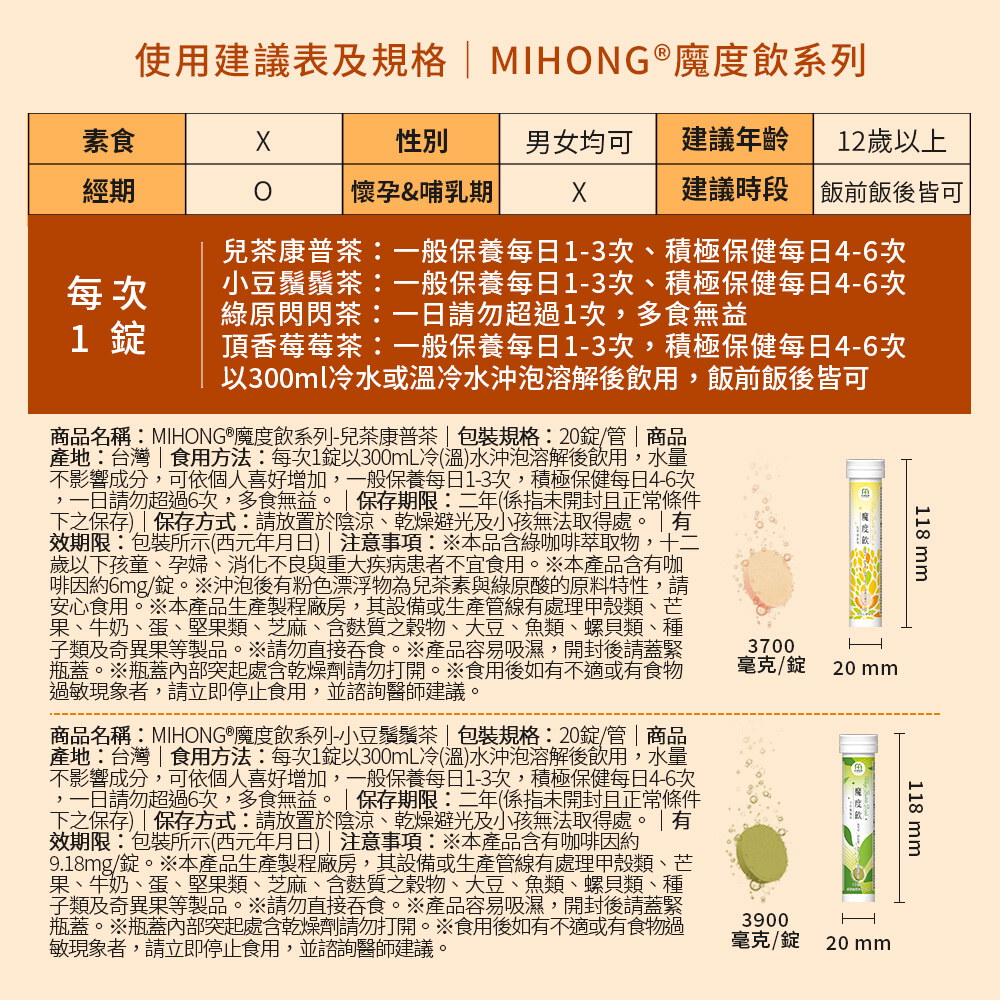 ※MIHONG® 魔度飲-兒茶康普茶(20錠/管) 注意事項: